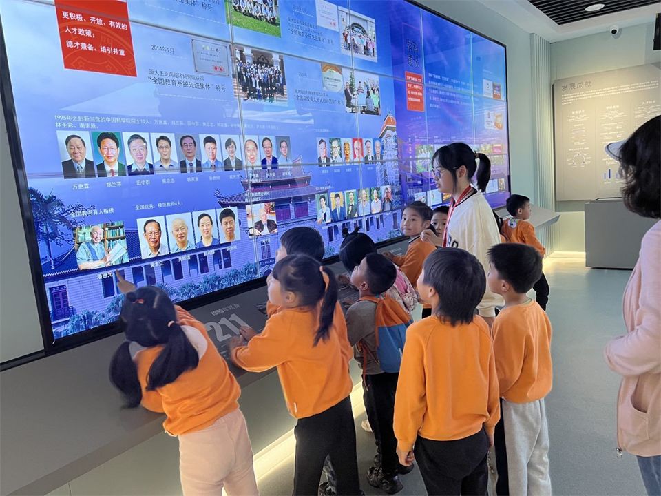 讲解员用通俗易懂的方式,结合校史馆大量珍贵的照片、历史文物和复原景观,让孩子们了解厦门大学建校历程。孩子们在一幅幅图片前驻足、观看,仿佛又将时光带到了那个烽烟四起,炮火轰隆的艰苦岁月。他们一边听着讲解员的讲解,一边发出阵阵惊叹声,用心去感受着厦大文化,了解嘉庚精神和历任校长。