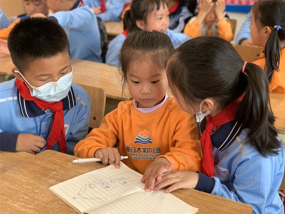 走进二年八班教室,我们认真的听着哥哥姐姐们讲述小学的生活故事,还准备了一些关于小学的疑问,决定问一问哥哥姐姐们,哥哥姐姐们热情地接受我们的采访,耐心地回答问题,为我们答疑解惑。