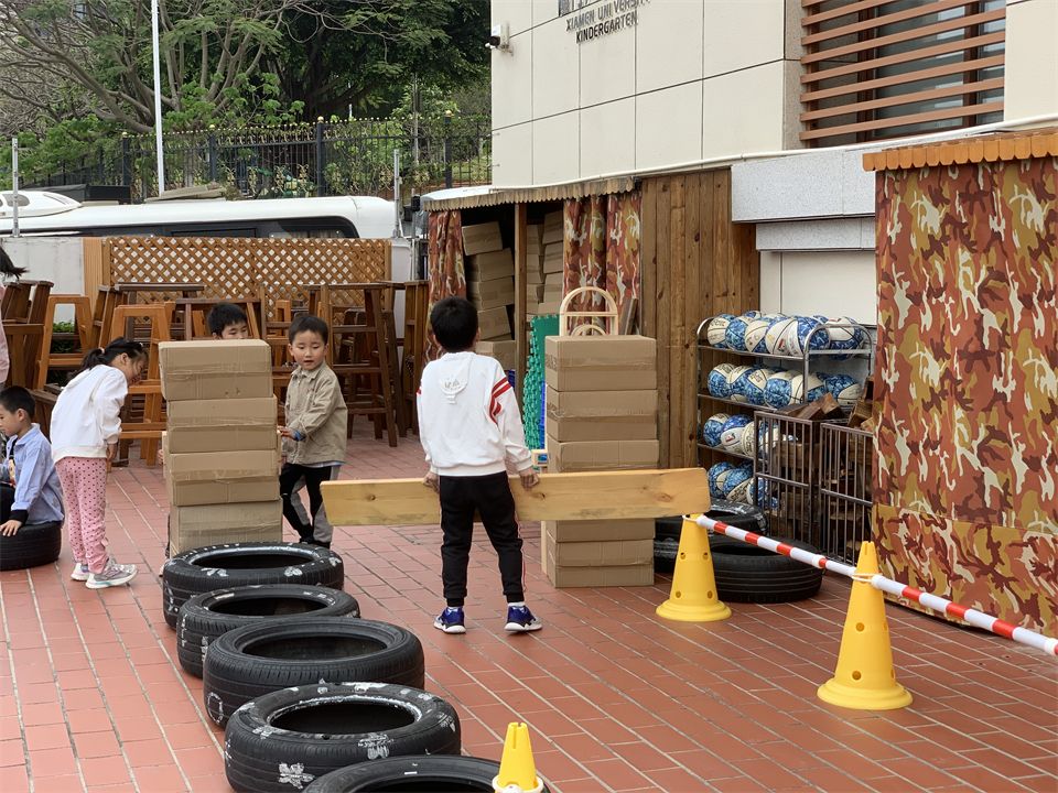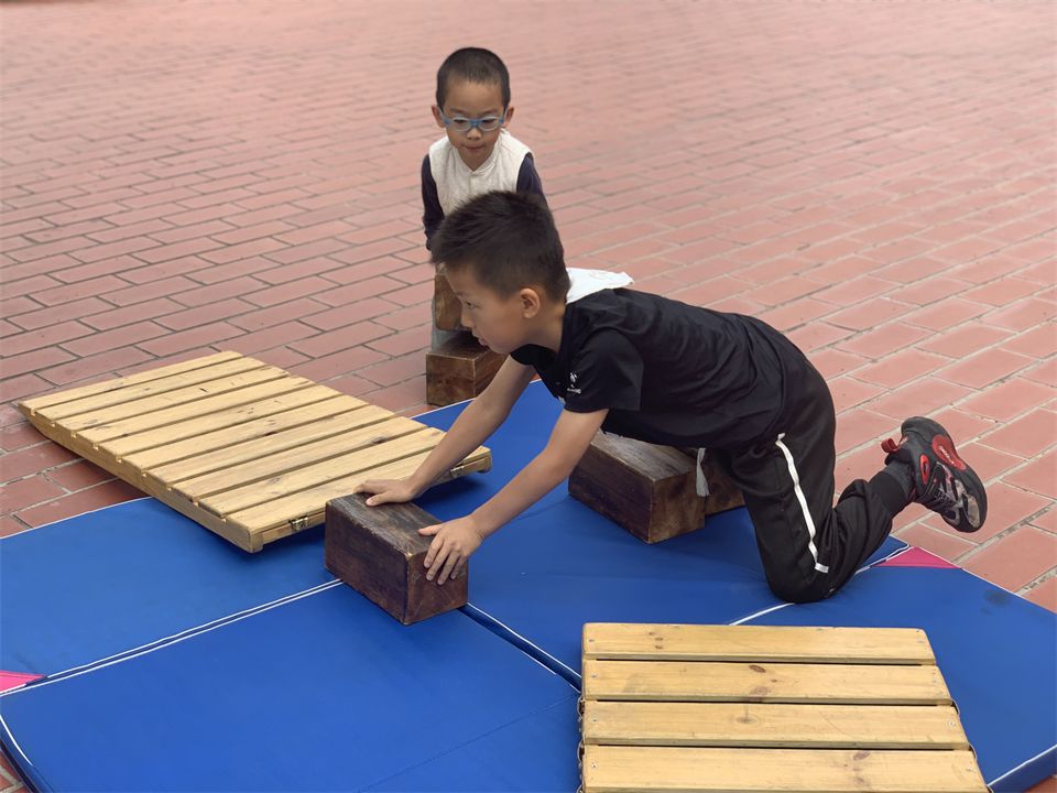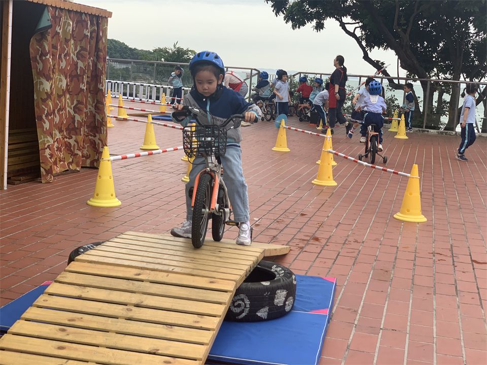 孩子们也吸取到了经验,把冲刺的车道延长,部分小朋友成功登顶,从顶上往下骑,体验到了成功的快乐。