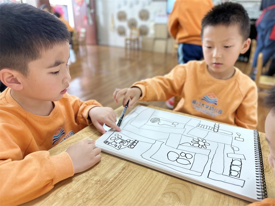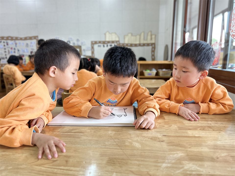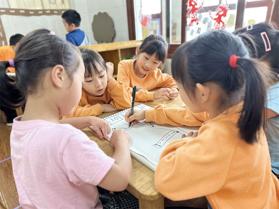 那怎么玩呢? 孩子们的想法多多,议论不停,在小组讨论计划完后就设计骑行道路。