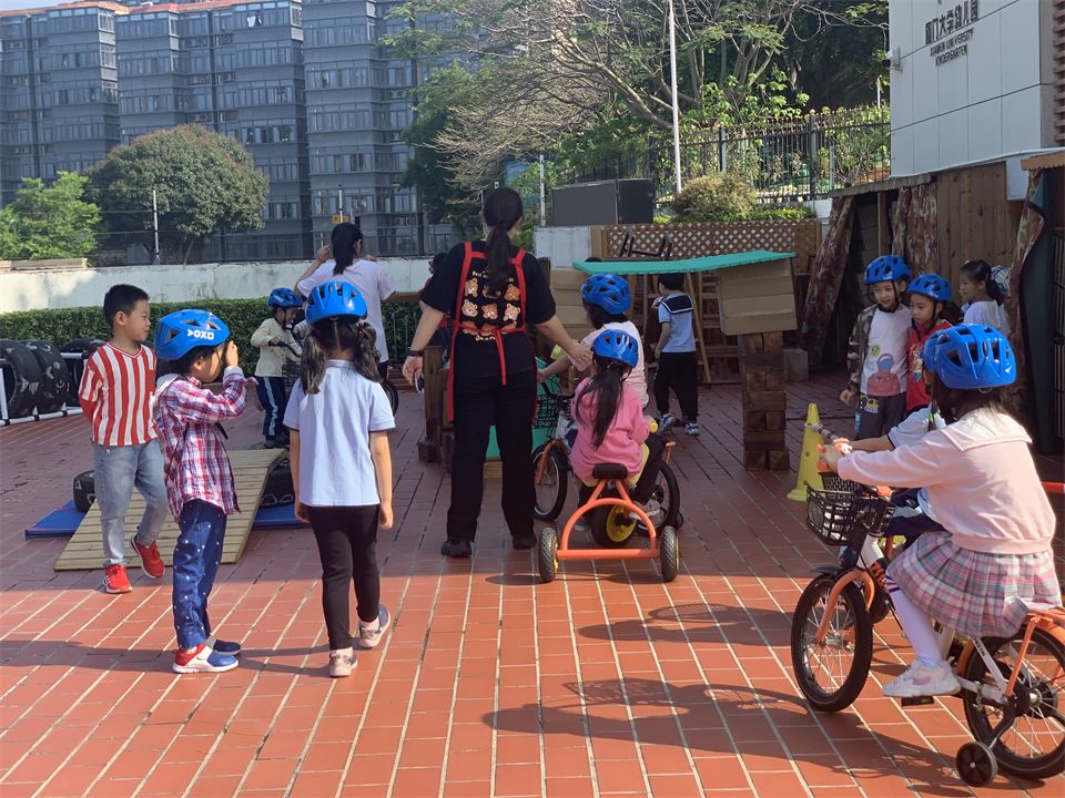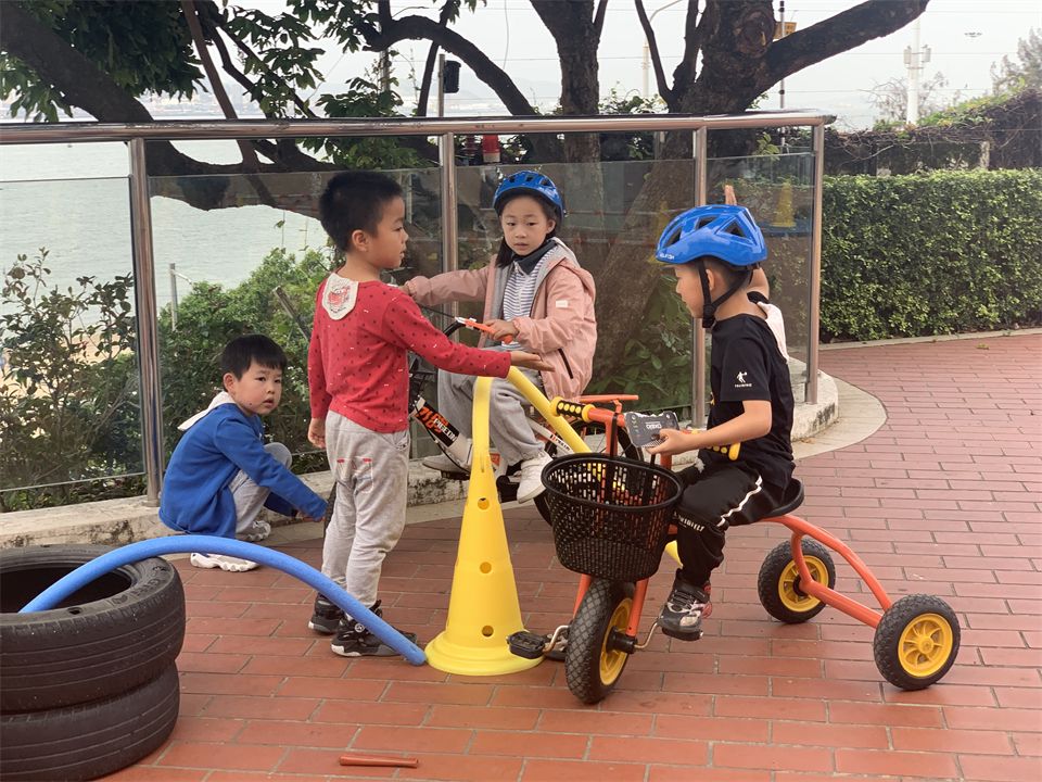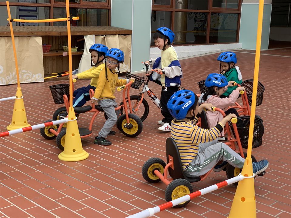 骑行游戏本是孩子们最喜欢的户外游戏之一,每次经过门厅是孩子们都会驻足一会,羡慕得不得了,心想什么时候才能骑上心爱的车车呢?这个月终于轮到我们班级玩骑行区啦。