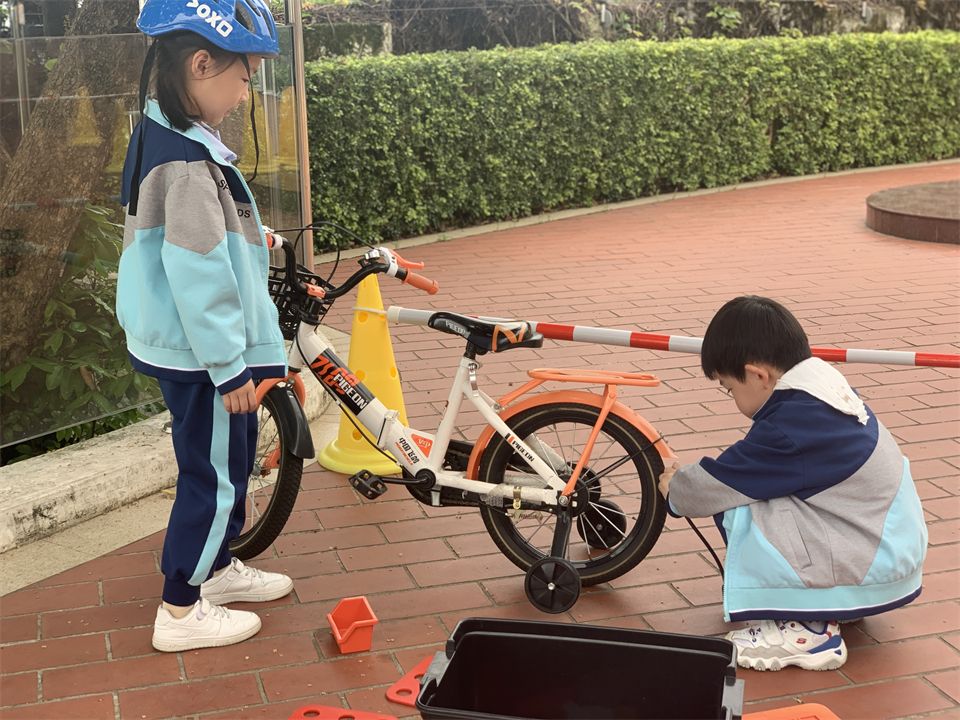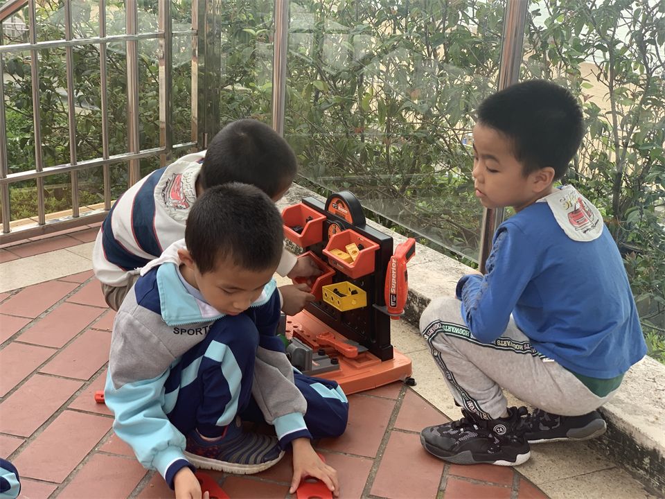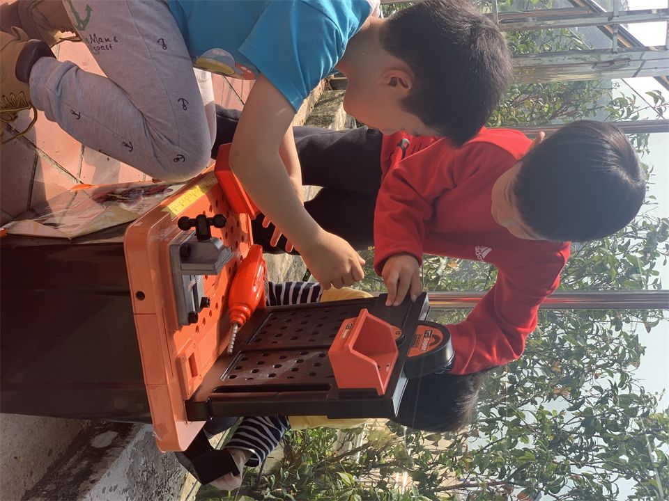 于是有有、鲤渊、赫予等小伙伴找来了修车工具就开始营业啦,有的负责给车子打气、有的负责检修车辆,有的负责找工具,修车店的生意也络绎不绝,逸凡负责起门口车辆的排队顺序,一切井然有序。