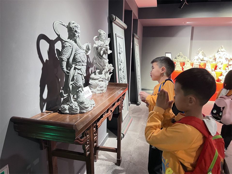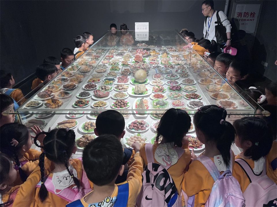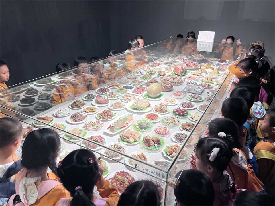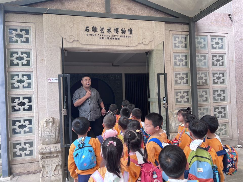 瞧!这是用石头制作成的满汉全席,看着也太美味了吧!宝贝们置身于石雕博物馆,被能工巧匠制作的石雕工艺品深深吸引,更是带给了他们深深的震撼。