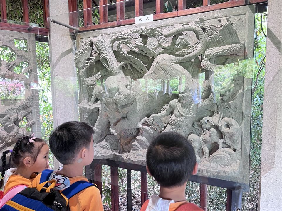 到达了惠和石文化园,宝贝们在讲解员叔叔的带领下,穿过文化石长廊,欣赏着形态万千、惟妙惟肖的石雕,深深感受着闽南石文化的历史传承与辉煌发展。