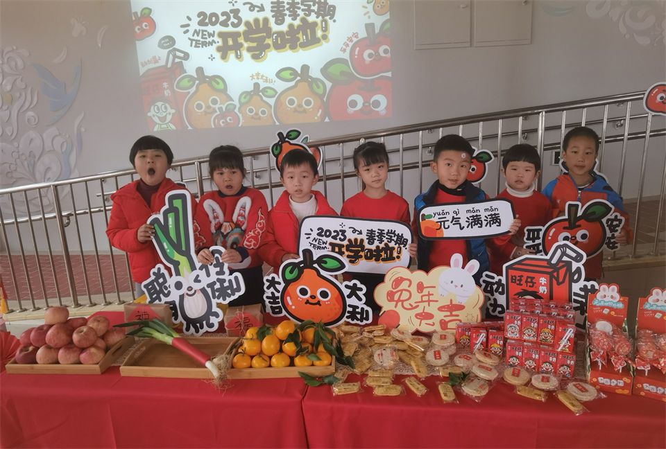 新学期悄然而来,一个个灿烂的笑容,一声声甜甜的问候,一幕幕温馨的画面,在一句句“新年好!”“早上好”甜蜜问候声中,我们穿上新装,踏着新春的气息开心入园,摸摸苹果、桔子、大葱,棒棒糖……来到了老师们精心准备的“福气桌”, 拥抱彼此,开启了美好的新学期!