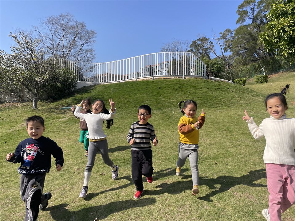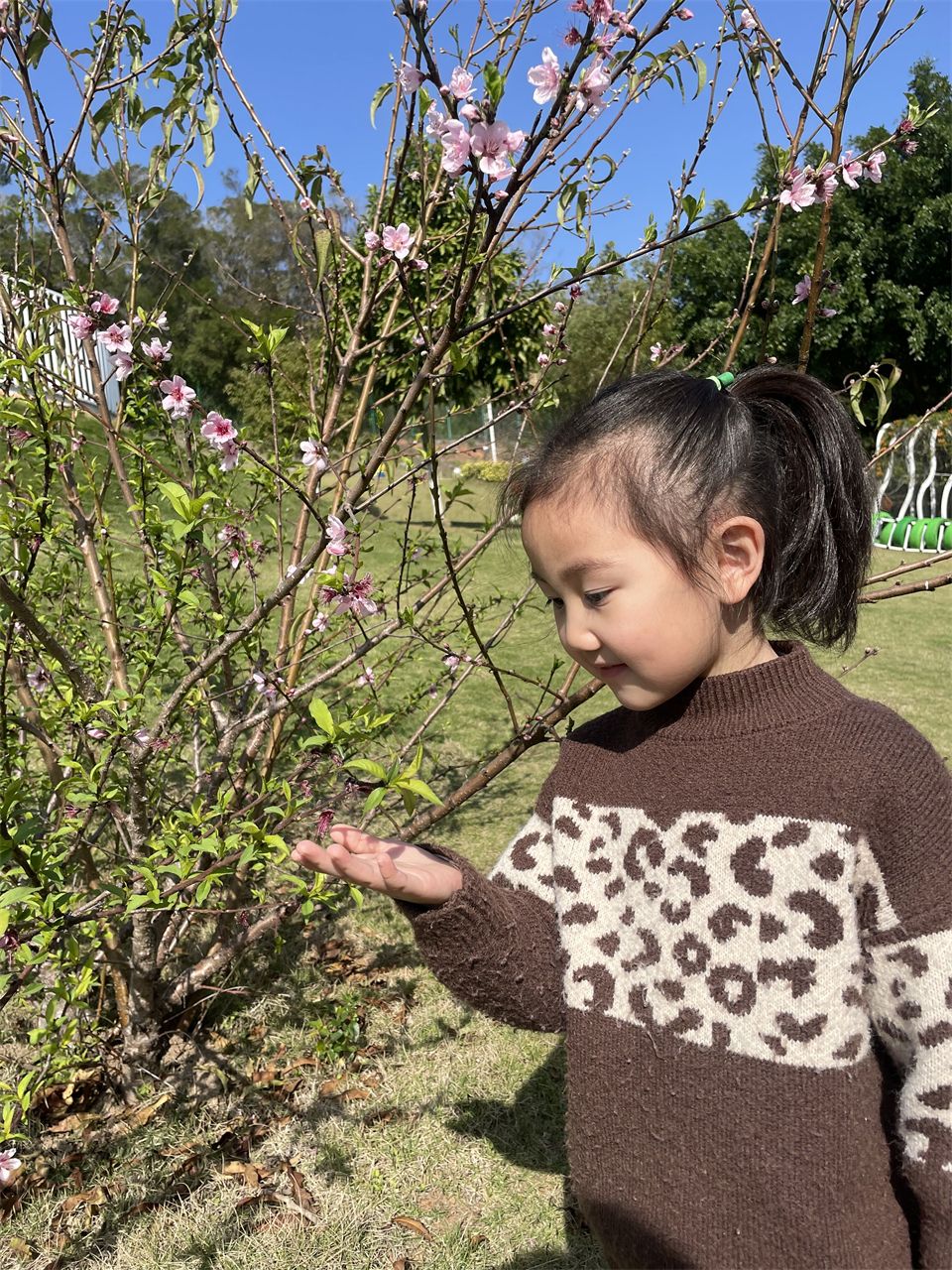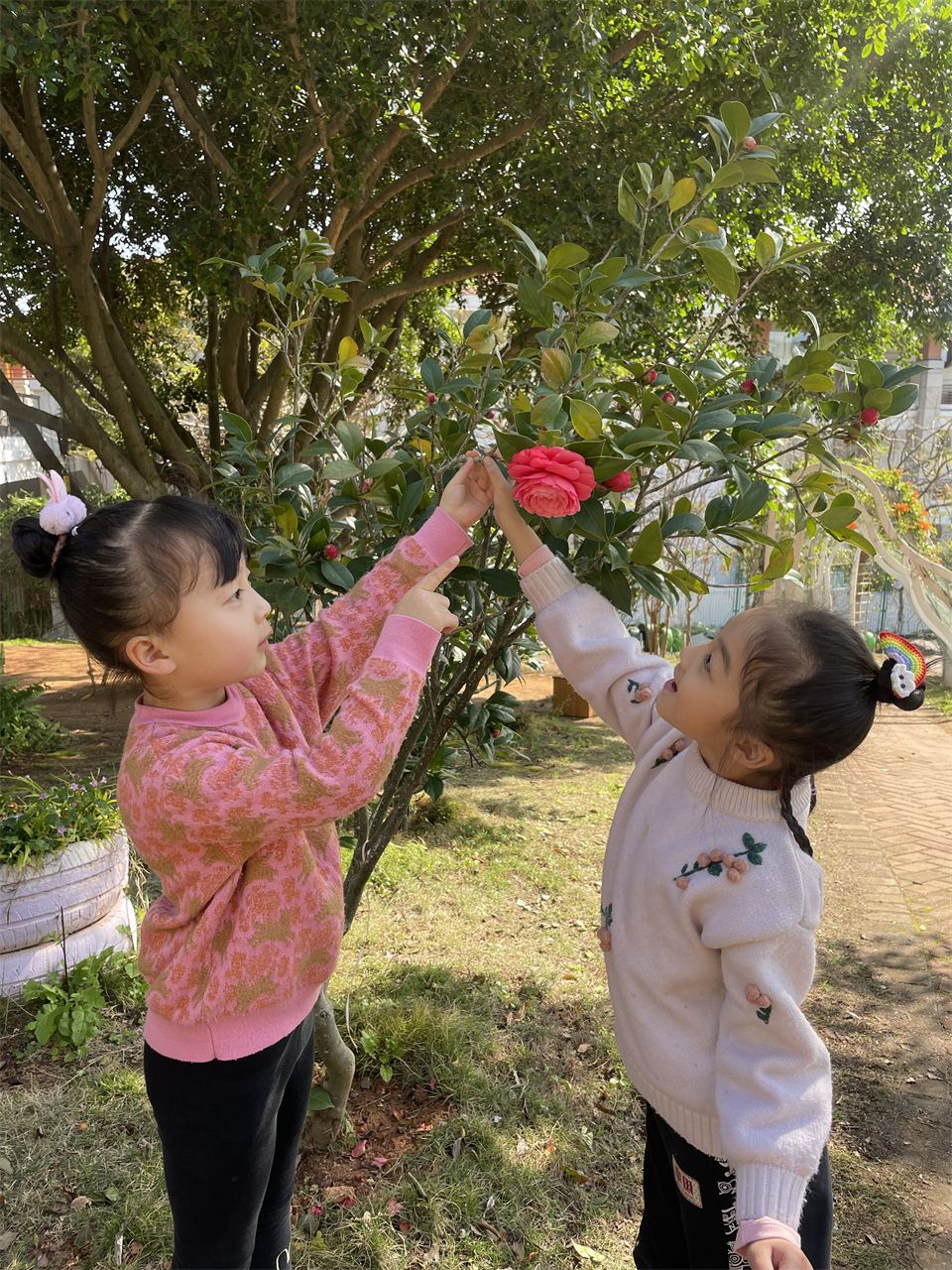 春回大地,阳光普照。户外时间到啦!宝贝们正沉浸在春意盎然的小山坡中,一个个动力十足,乐在其中!盛放的山茶花、粉嫩的桃花吸引着爱美的宝贝们。你瞧,宝贝们正驻足欣赏着美丽的花儿,感受着大自然的美好!