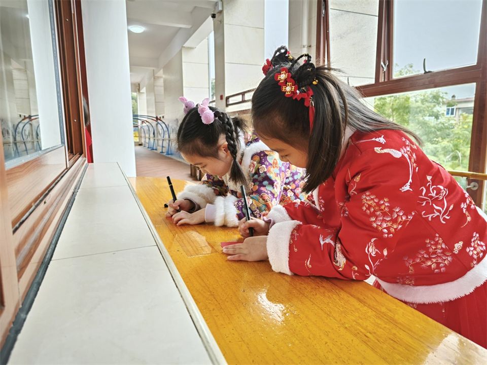 瞧!班级大门及窗户在老师与宝贝的共同合作下,被贴上了新年氛围浓厚的对联和福贴,真是好喜庆呀!