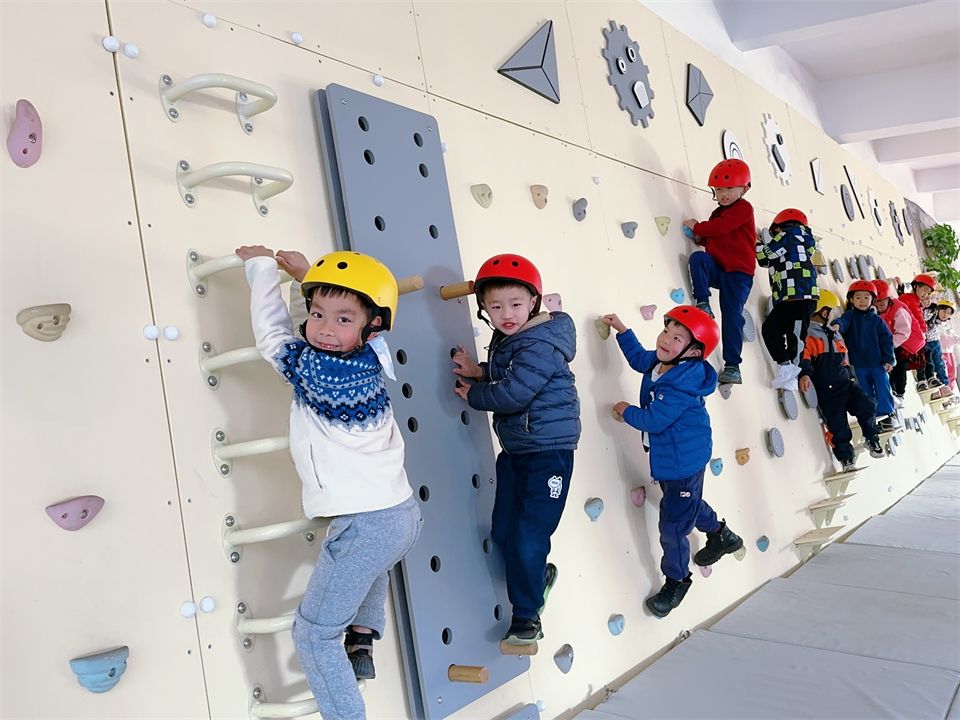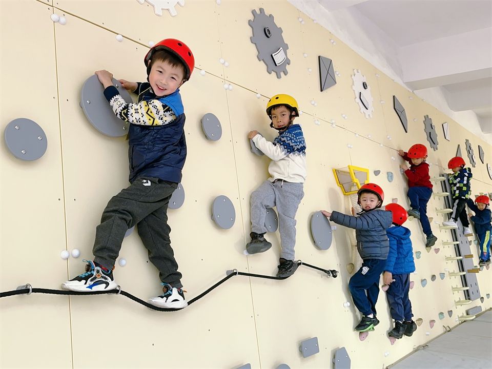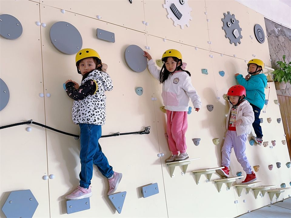 宝贝们的笑脸每天都仿佛那春日的暖阳,开开心心的来到幼儿园进行户外运动,最近大家都爱上了崭新的攀爬墙,戴好头盔,保持距离,我们出发啦!