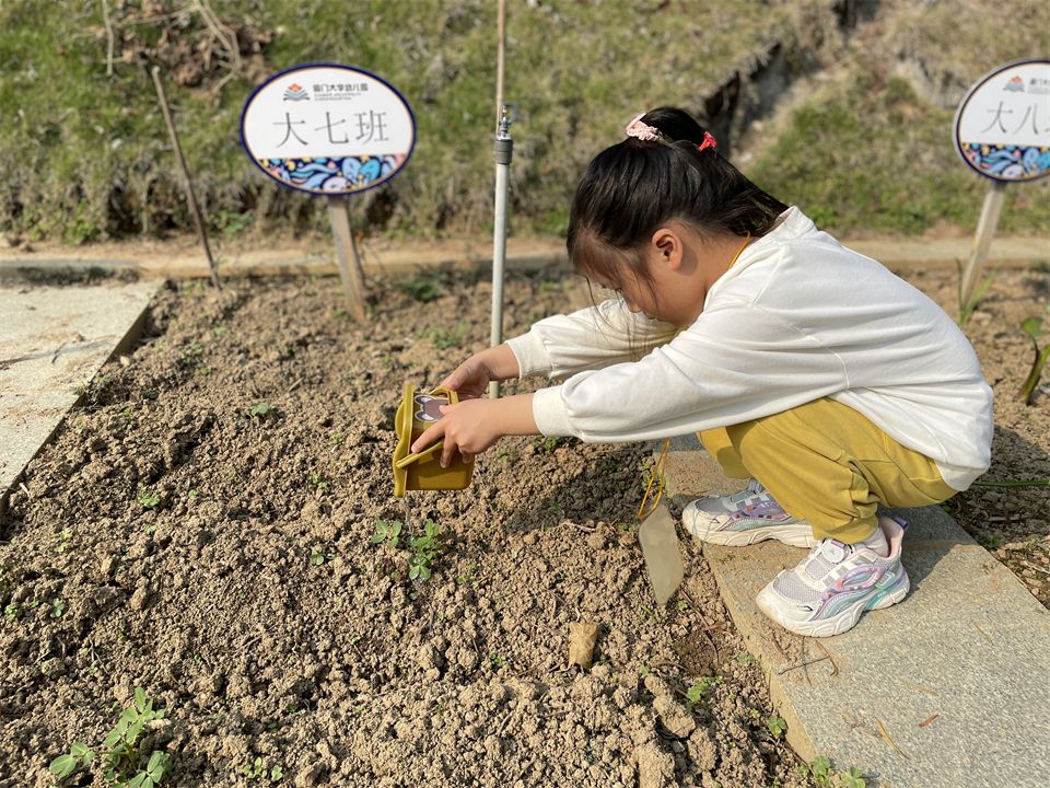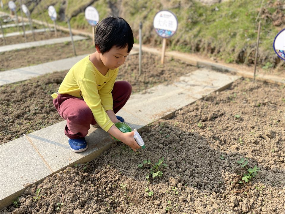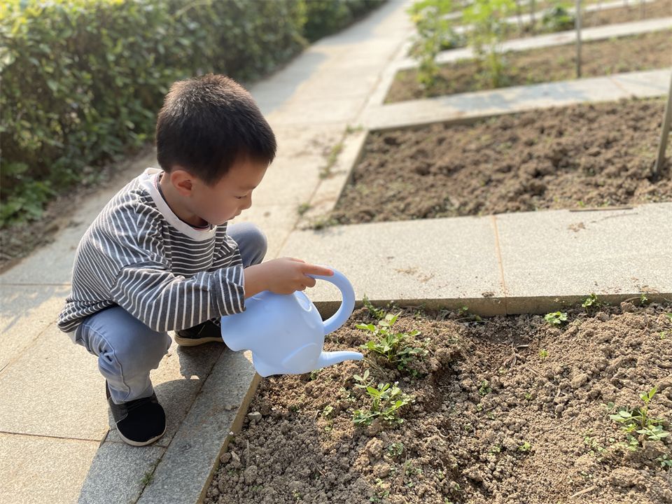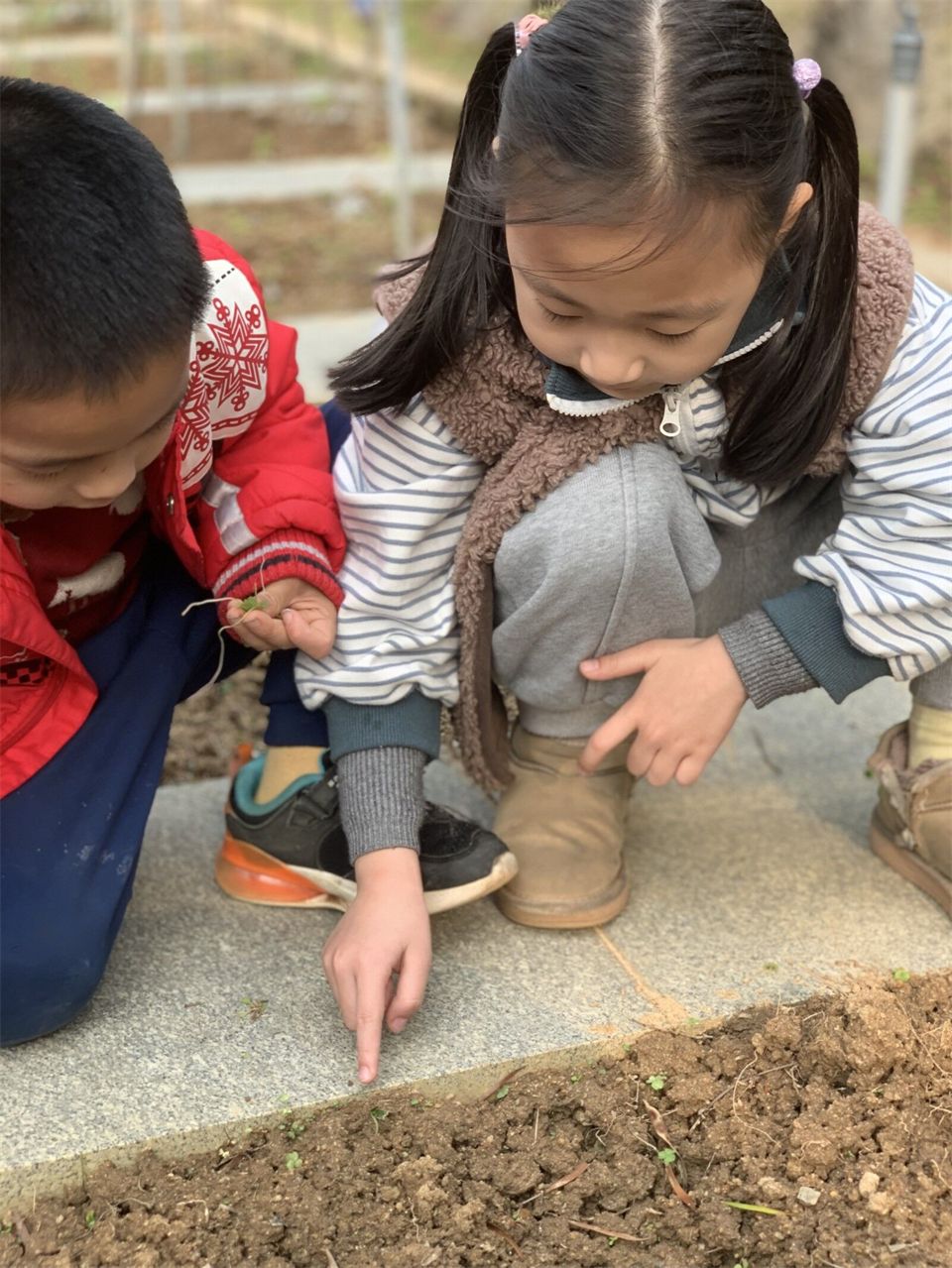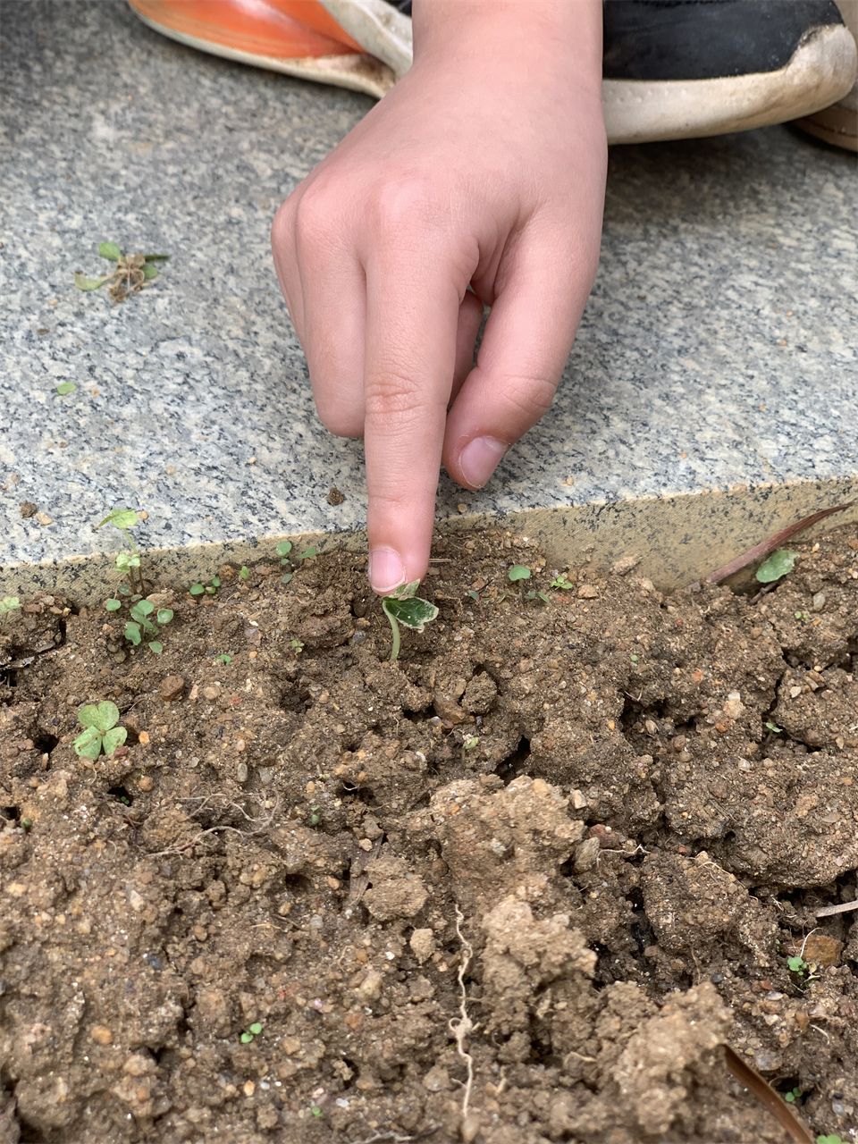 自从种下花生种子后,这里每天都很热闹。在孩子们的精心呵护和满心期待中,有个小可爱悄悄从泥土里探出了头……