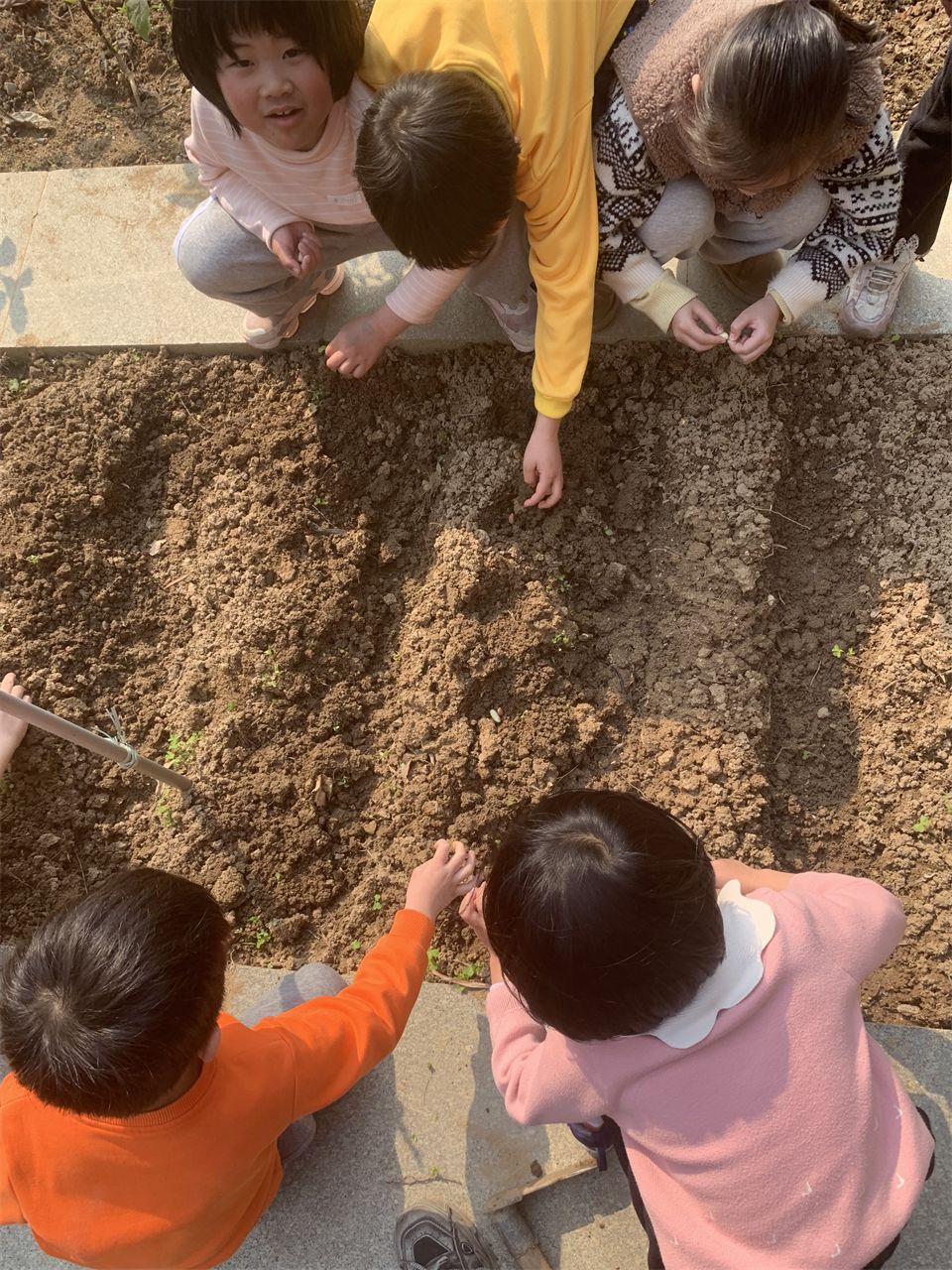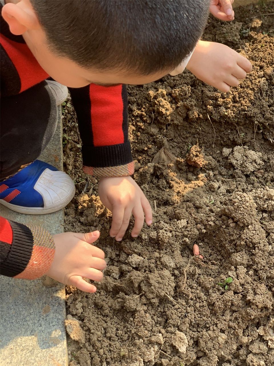 做了充足的准备工作,播种时大家都显得得心应手,知道该使用什么样的工具以及如何进行播种。瞧,放完花生种子后,小心翼翼用手把“被子”给花生盖上。