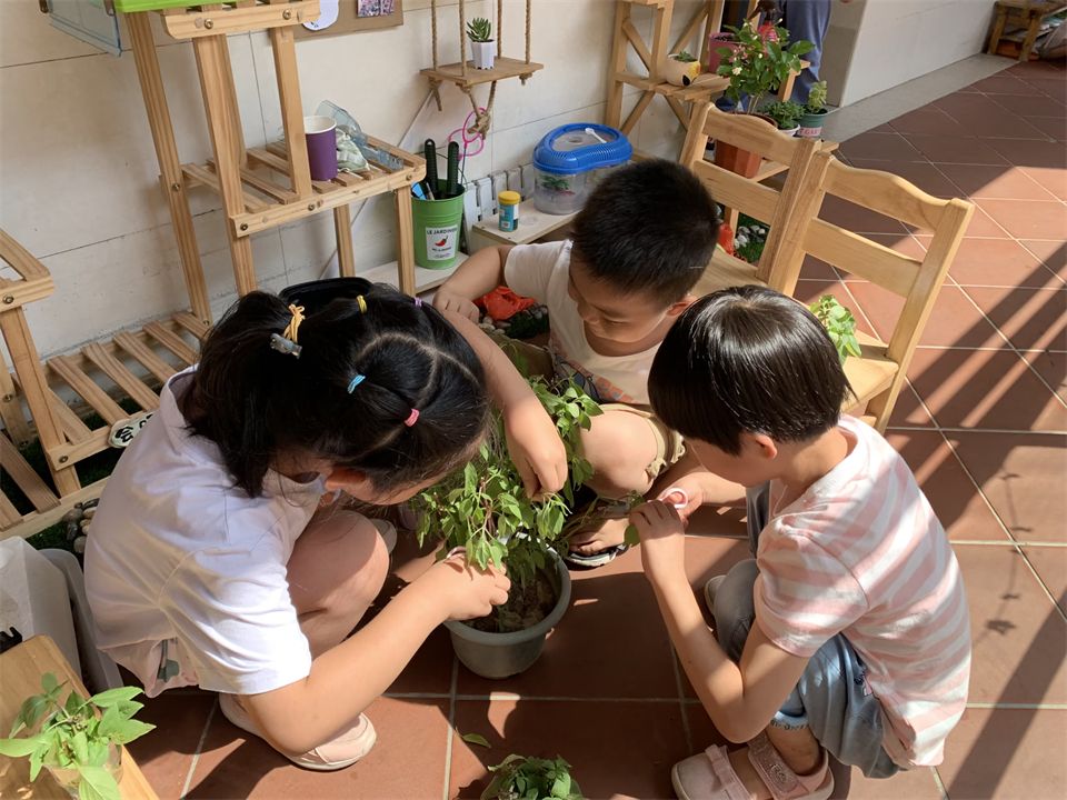 宝贝们每天都要去关心一下培育中的小苗,定期为它加水、换水。