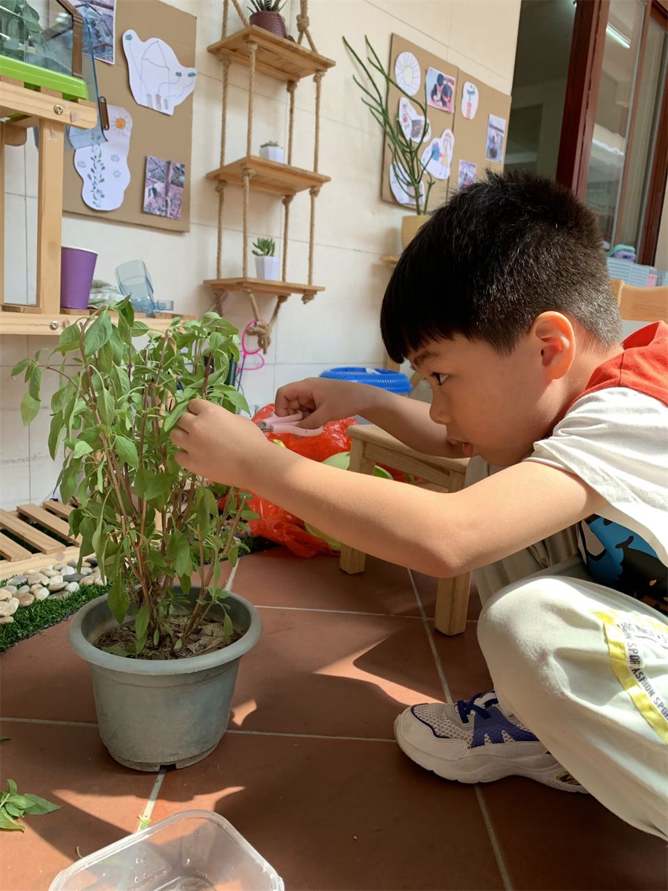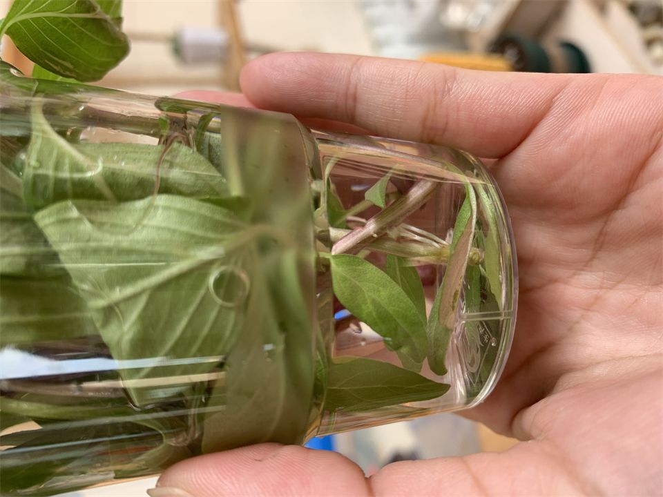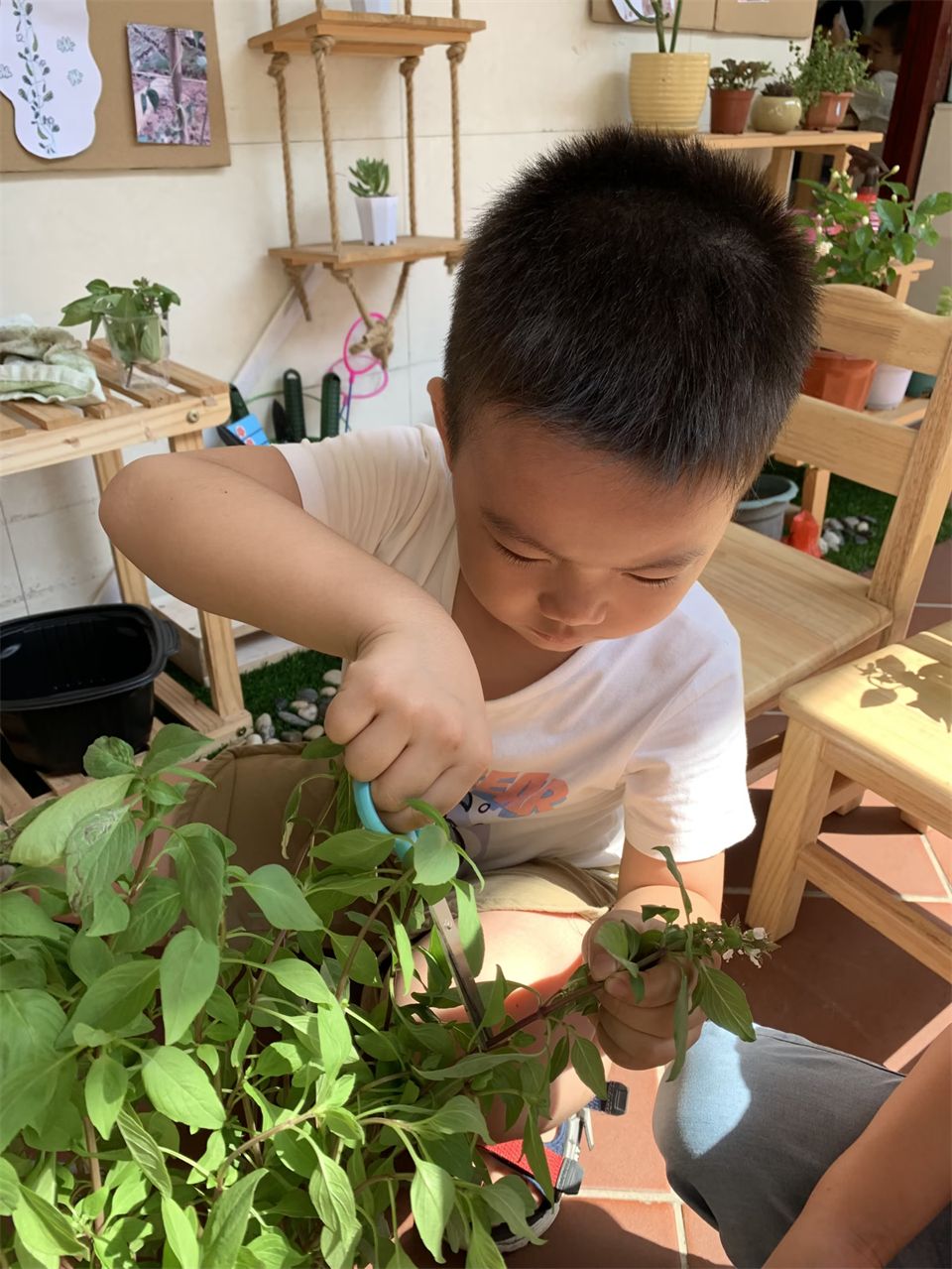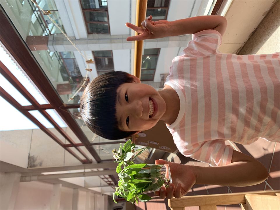 “只有一盆的我们也可以把菜地种满,我们需要剪一些小枝,放在水里,经过一段时间它就会长出根,这时候,我们就可以把它移去菜地啦。”