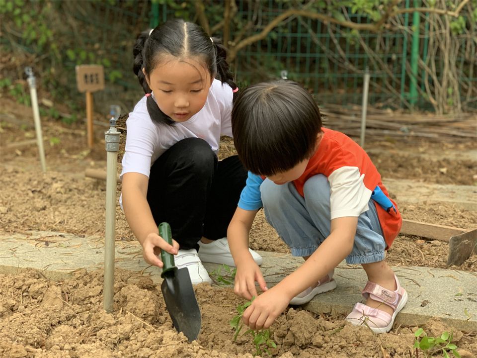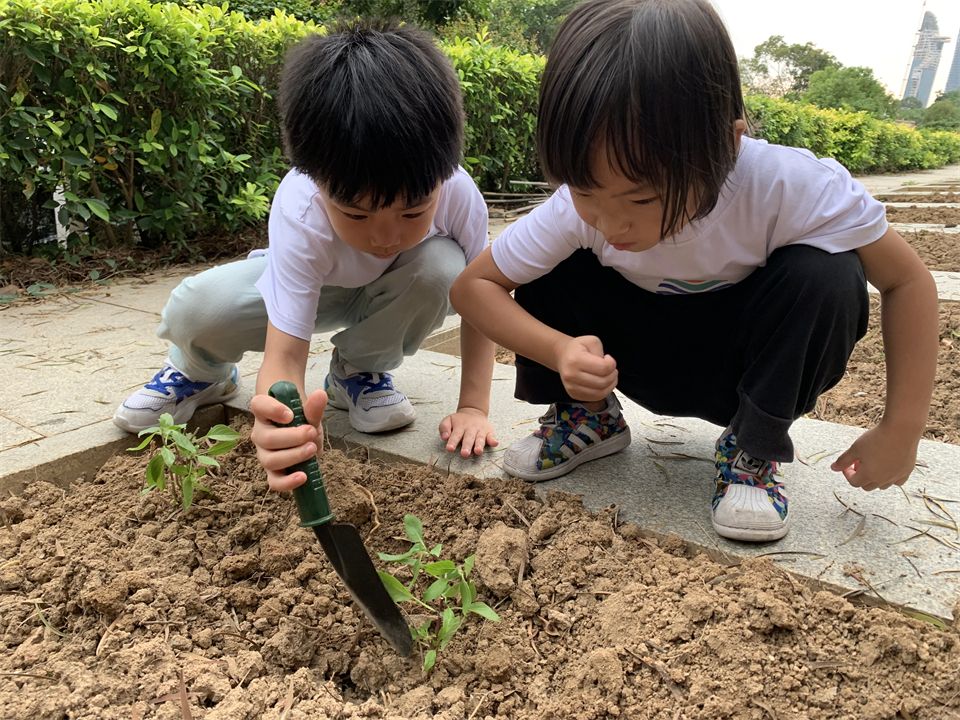 区域时间泽泽为大家科普了九层塔的小知识,认识了九层塔后宝贝们决定在我们的菜地上将它种上。