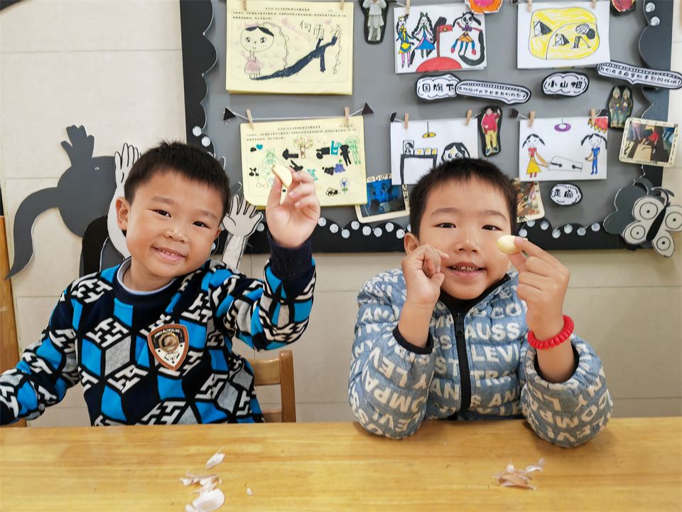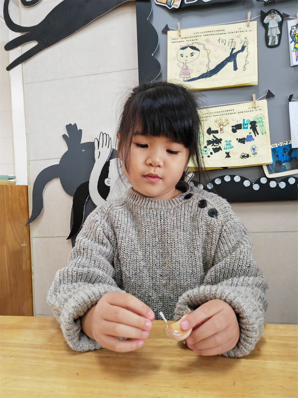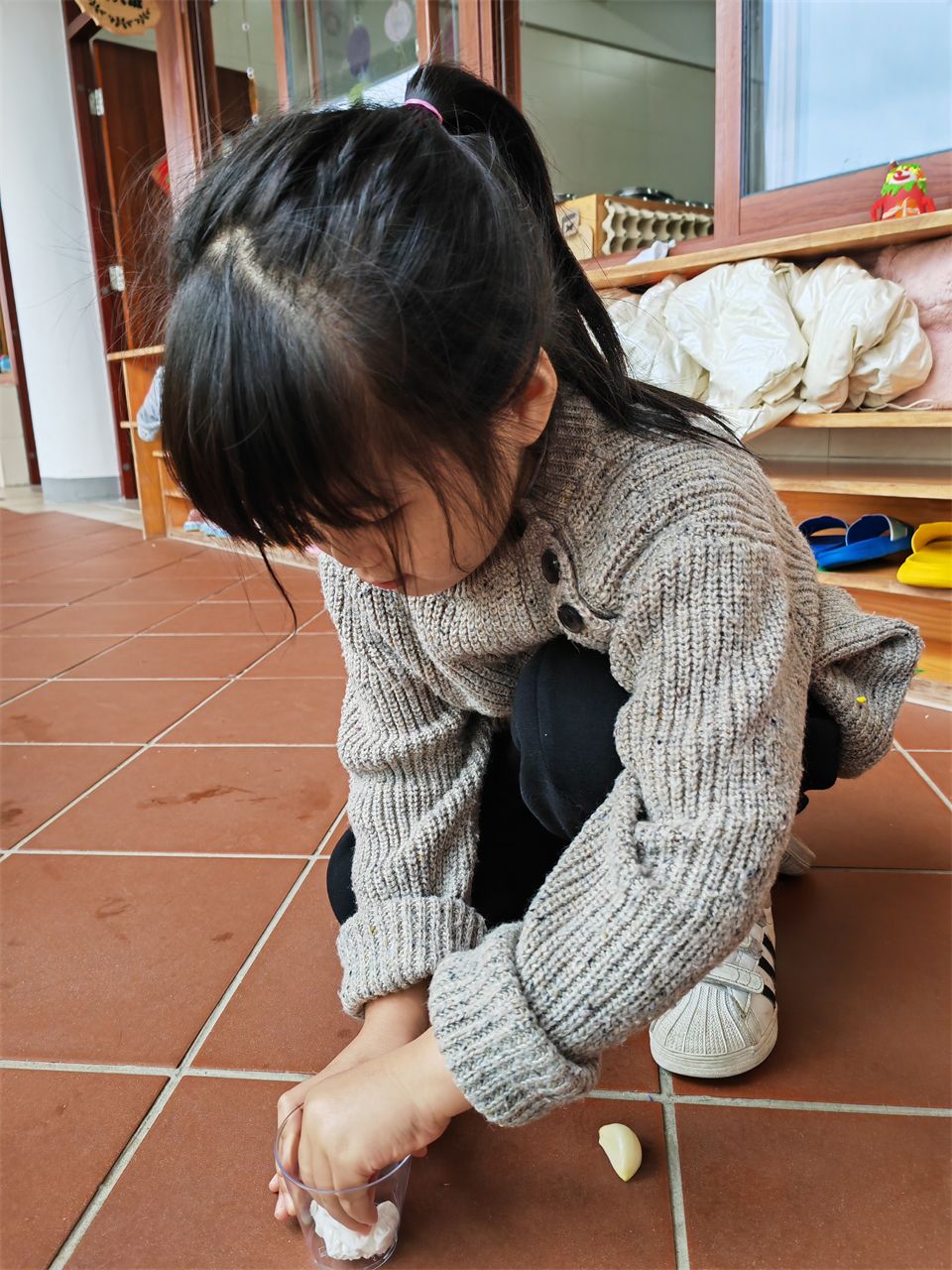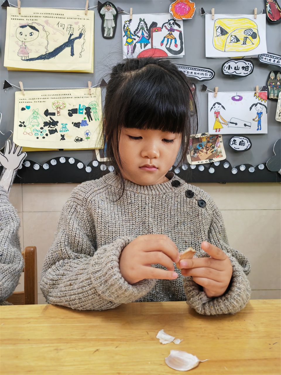 小朋友们把大蒜分成一瓣一瓣的,他们掰的十分的认真,生怕哪里做的不好,会影响大蒜的生长。