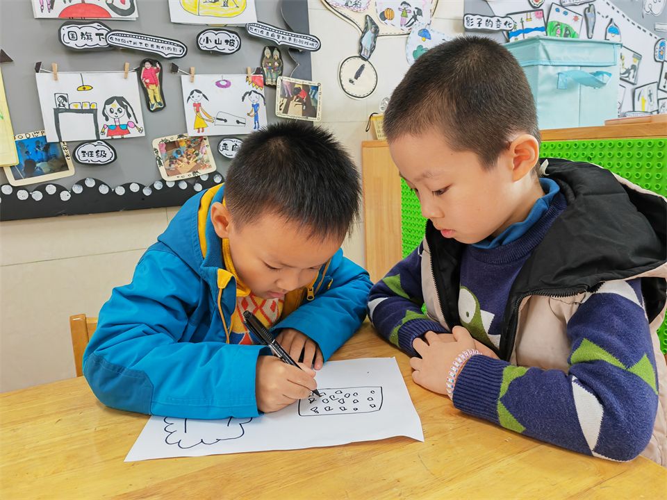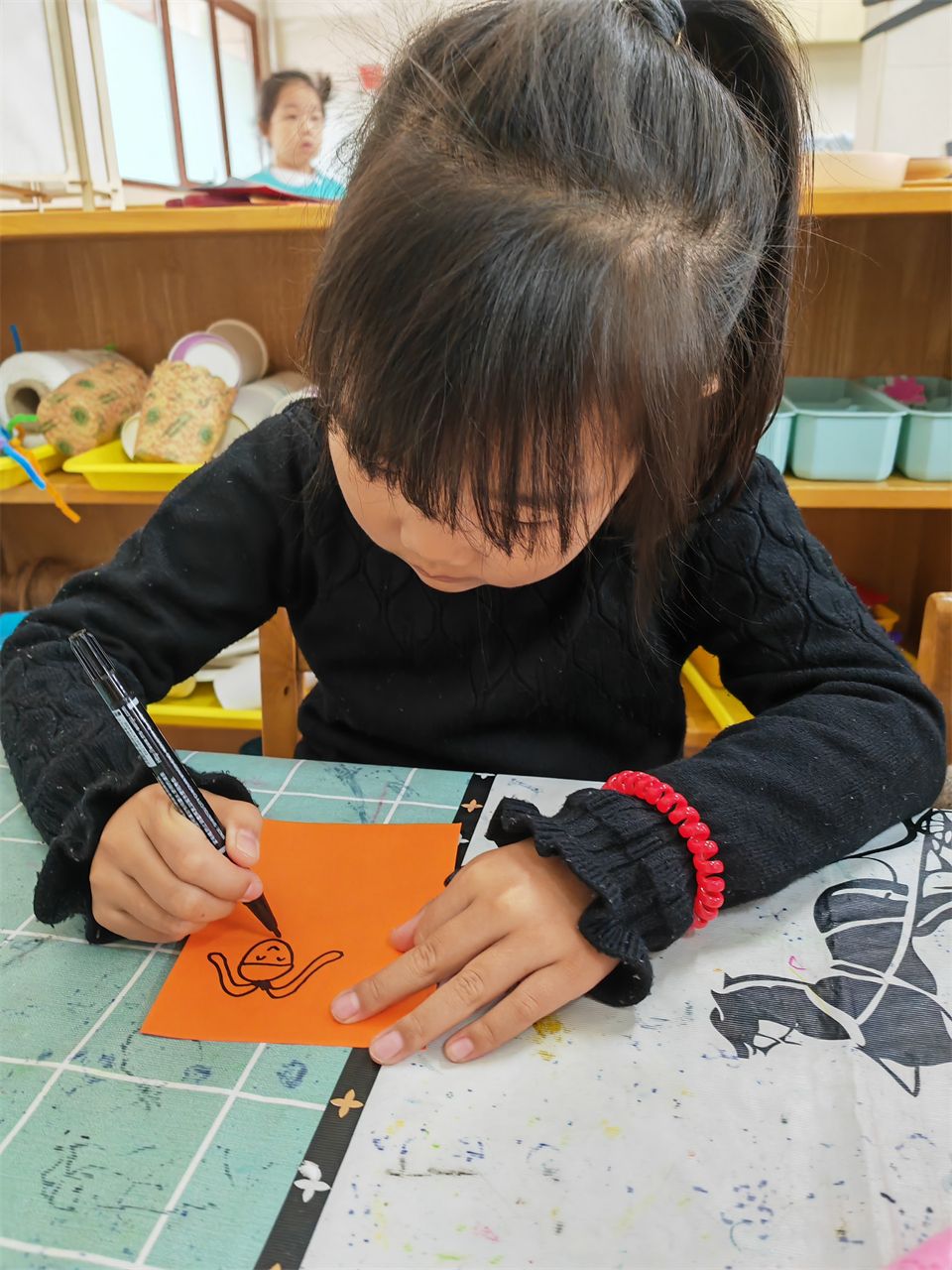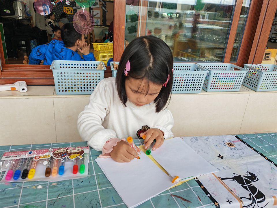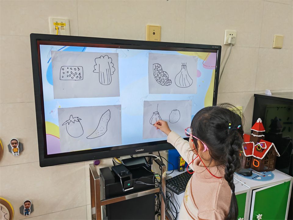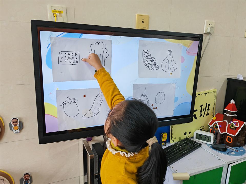 宝贝们惊喜于萌发的新芽和长高的蒜叶,开心地用笔记录下大蒜的生长过程。