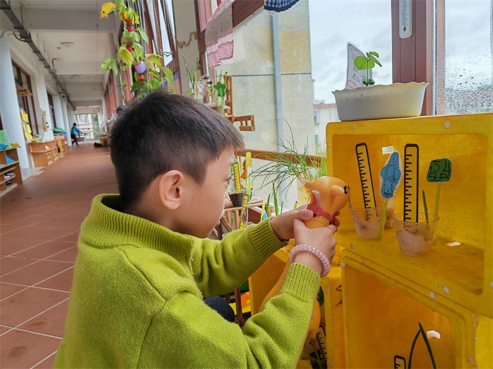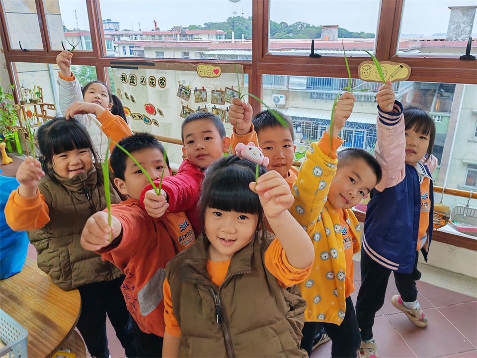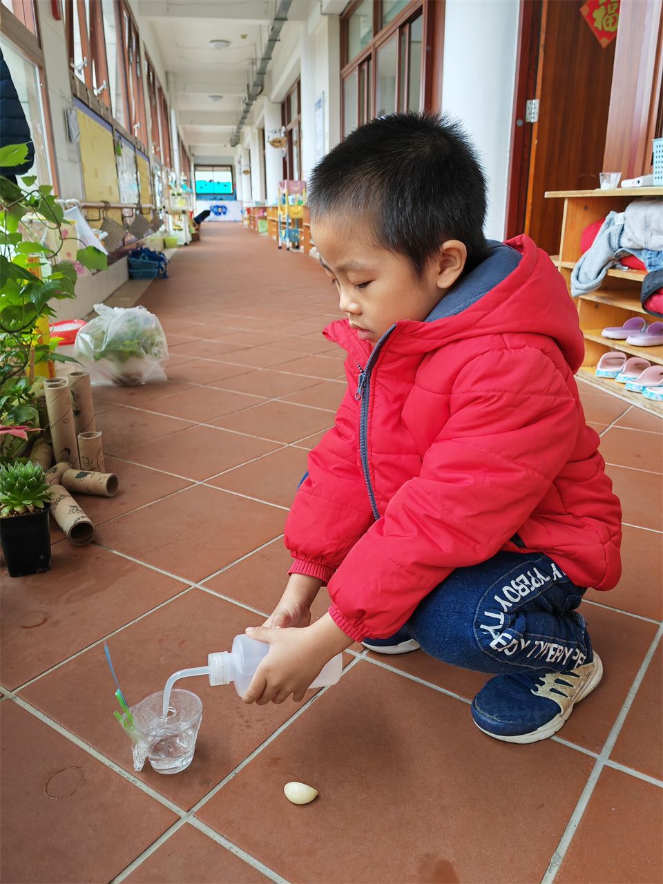 从白白胖胖的小蒜头,长到绿油油的大蒜,总共不到一个月的时间。大蒜们一天一个样,每天都能增高不少。宝贝们每天都会主动跑去看看,给大蒜浇浇水、松松土、说说悄悄话:“大蒜宝宝快快长大呀,长得高高。”