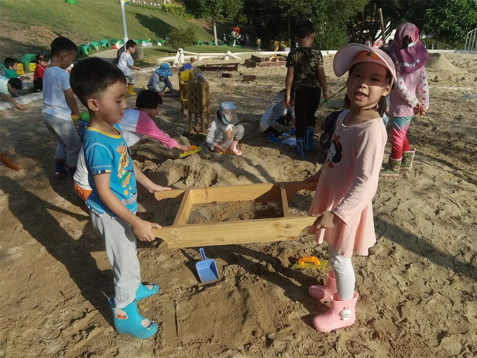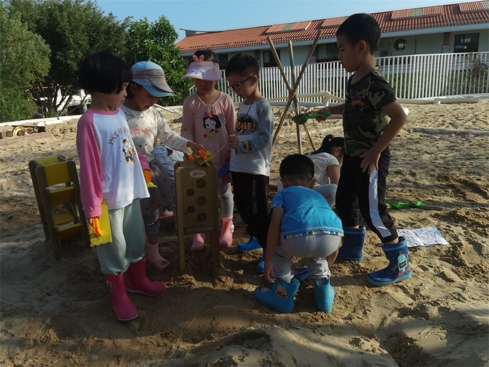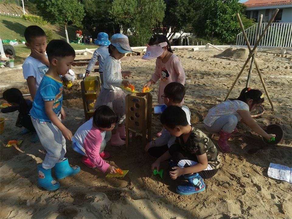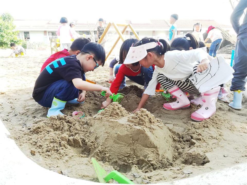 玩沙游戏是大一班小朋友们最喜欢的游戏之一,沙子里蕴藏着无数的游戏契机,它的流动性和可塑性,使游戏变化多端,乐趣无限。