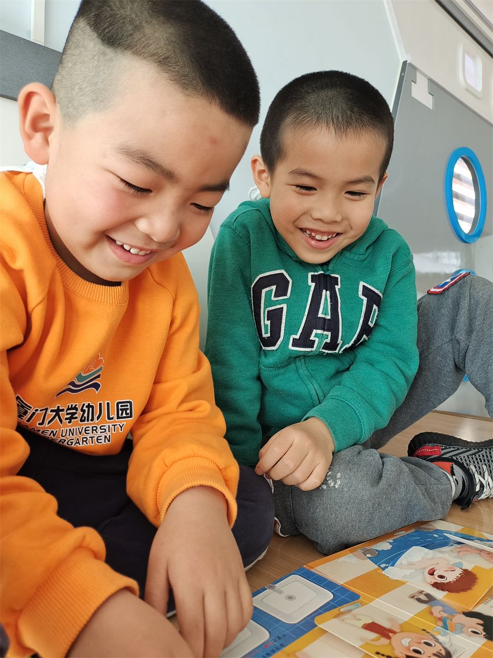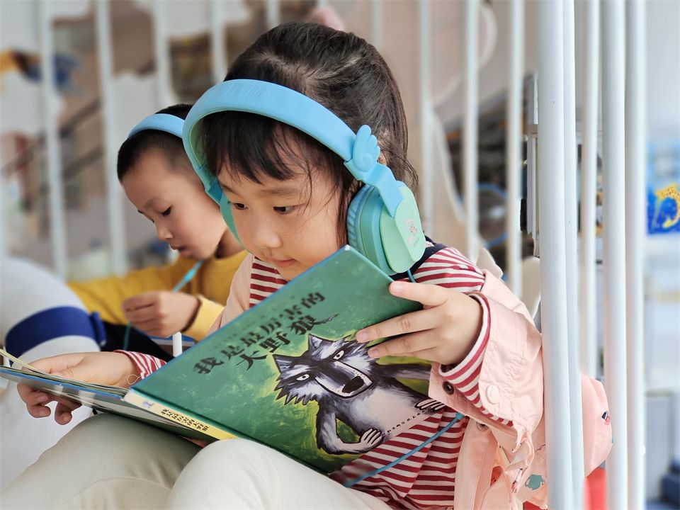 绘本故事是一粒幸福的种子,把它洒在你现实中的土壤,就会慢慢生根发芽,有时还会开出五彩缤纷的花朵。暖阳下的听海书吧,只见孩子们戴上耳机,沉浸在书的海洋,书香带领着他们打开一座座“神秘的世界大门”。