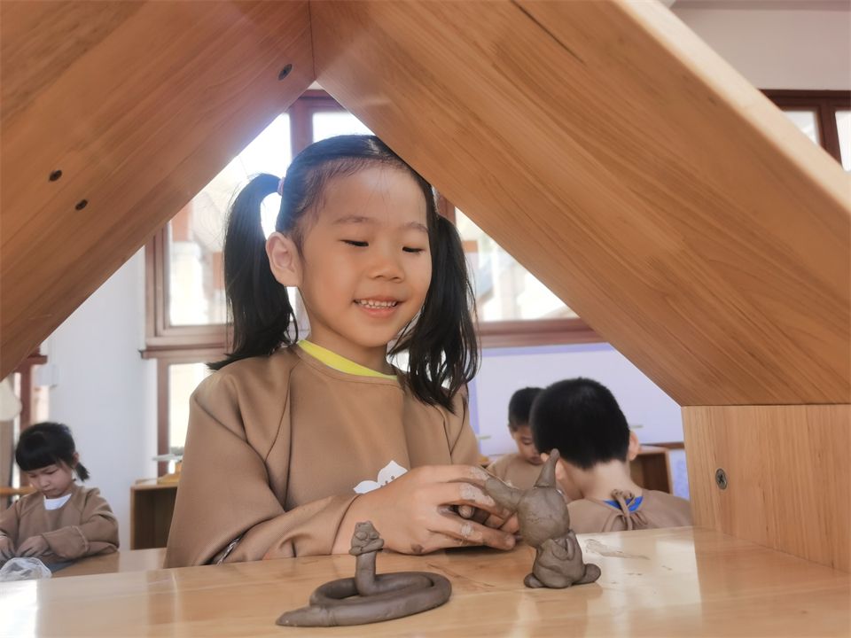 泥是最具有生命力的东西,在淘泥坊,孩子们用一双双灵巧的饿瘦,感受这个泥土独有的特性;在指尖的团团捏捏中,激发着大脑的灵感。它的趣味性、可塑性、创造性尝尝让孩子们陶醉其中,乐此不疲。