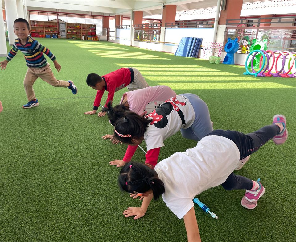 孩子们灵活地躲避了绳子,手脚并用地快速前进……