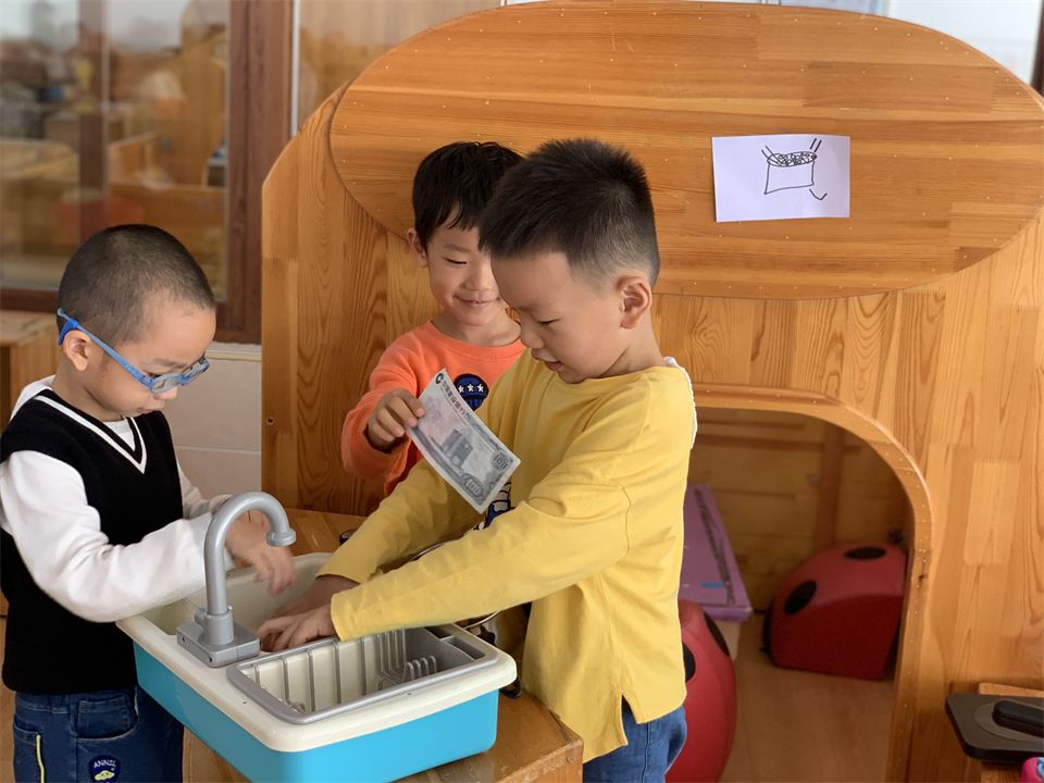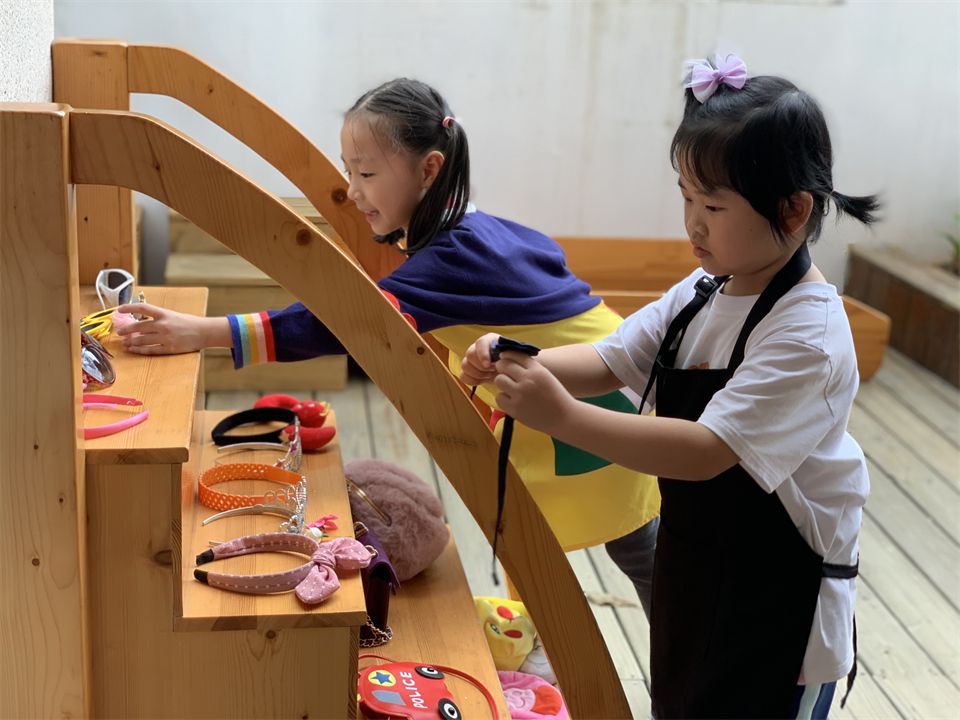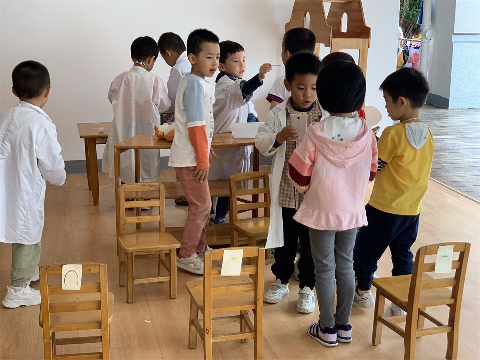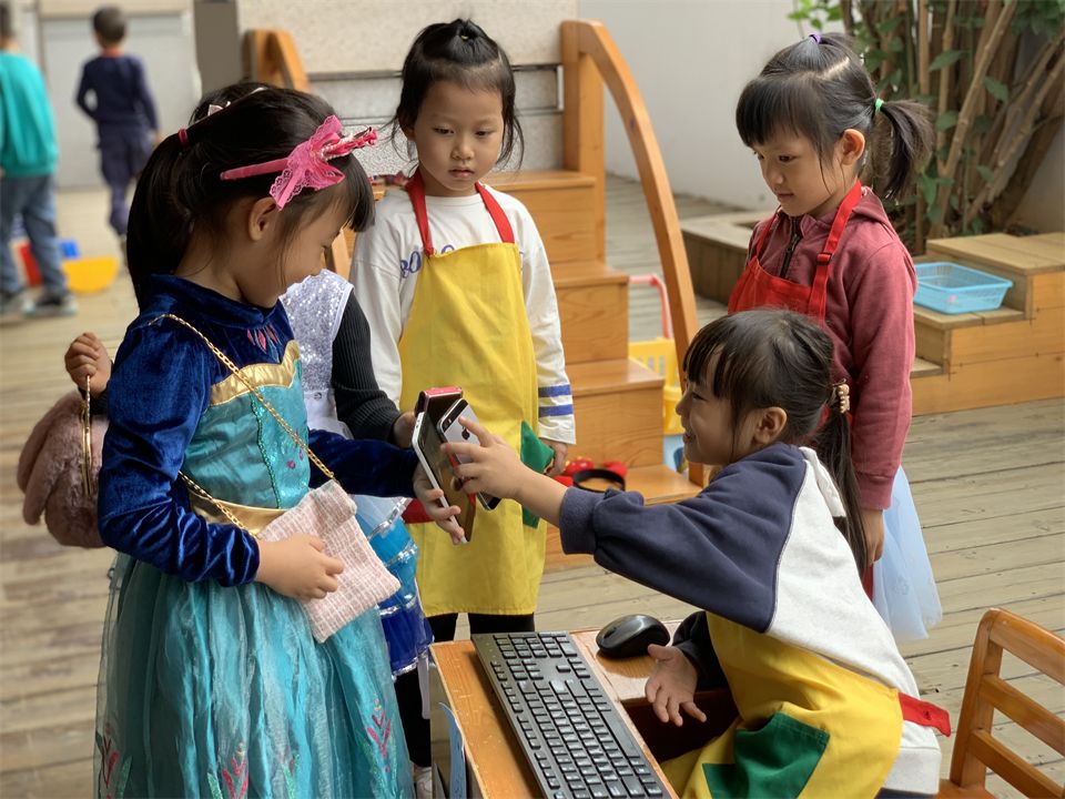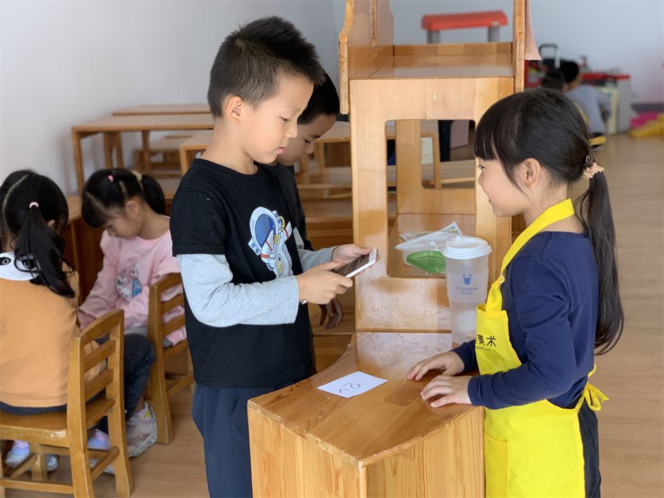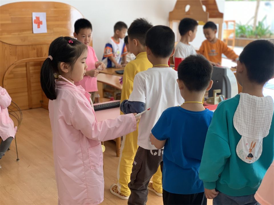 在角色游戏中,宝贝们自主选择角色,可以当服装店的老板、店员,医院的医生、护士,奶茶店的店长、餐厅的经理、服务员等,也可以当小顾客、娃娃家里的家长、孩子等,在游戏中体验周围生活,再现小社会。