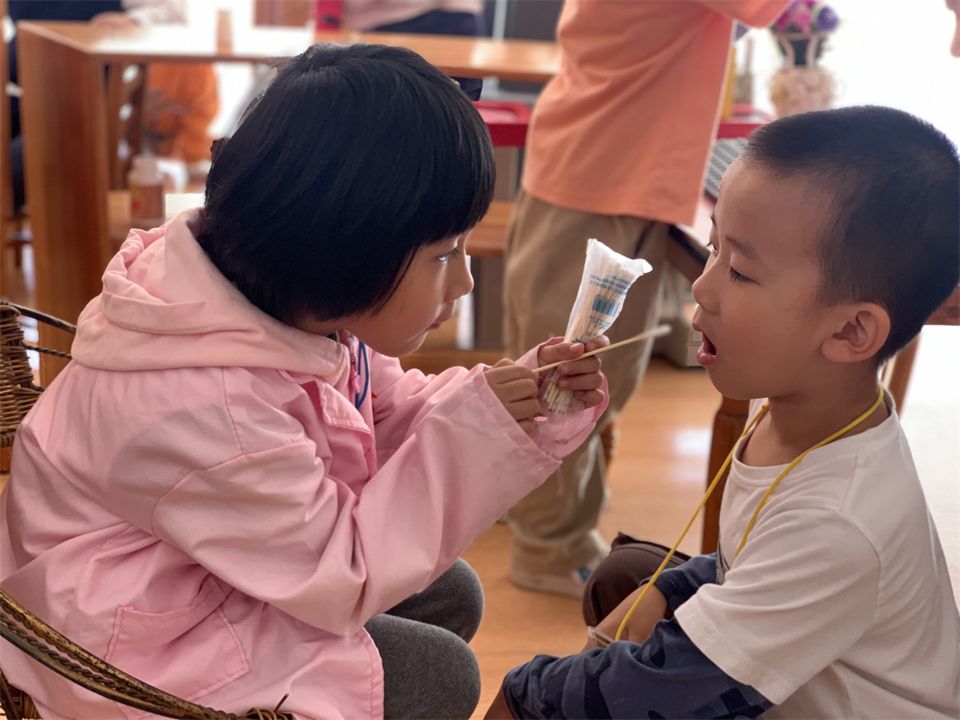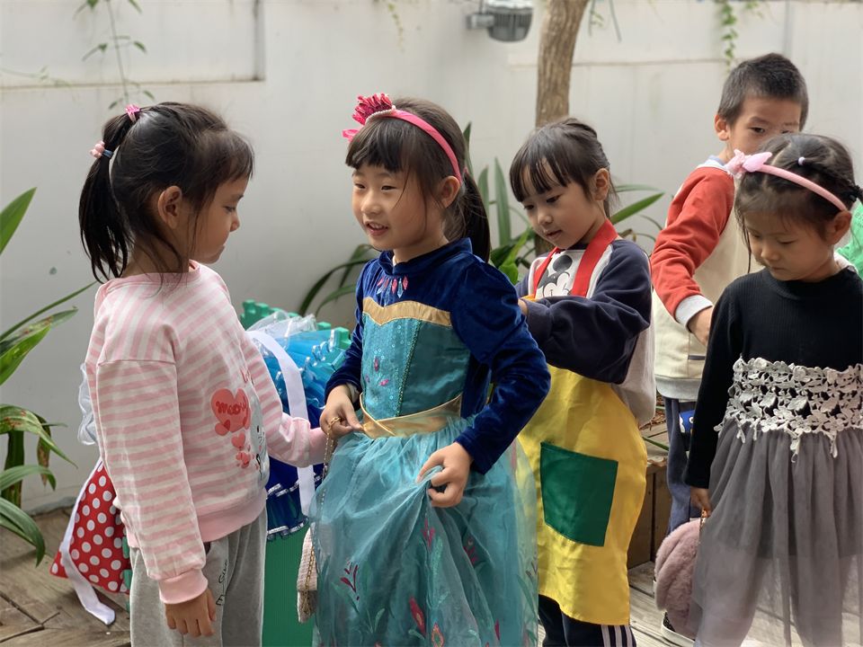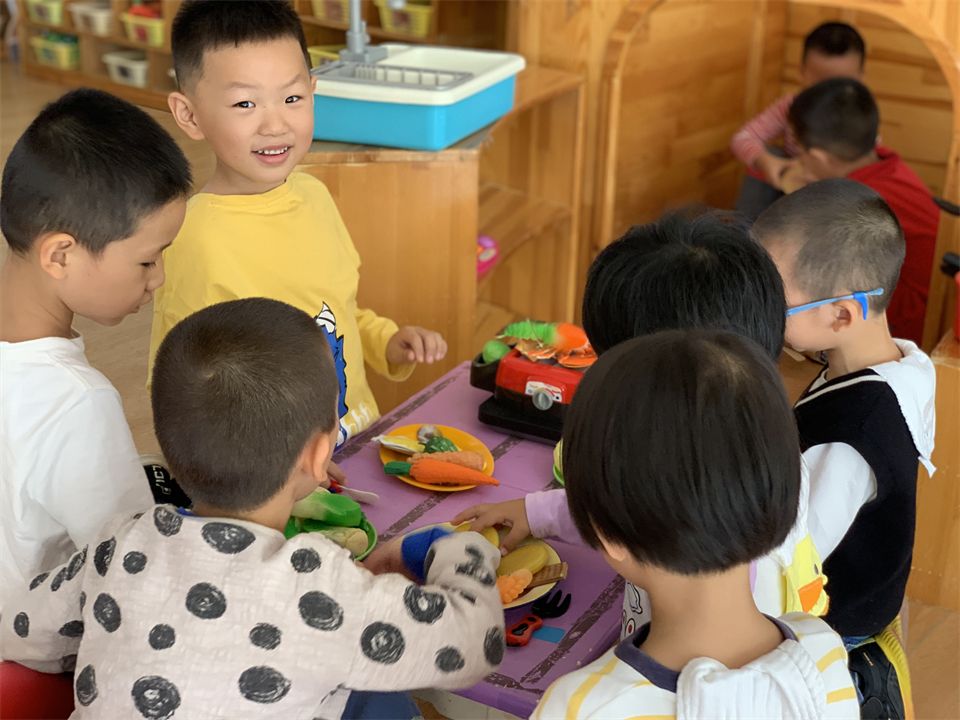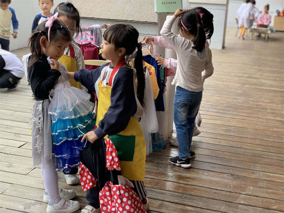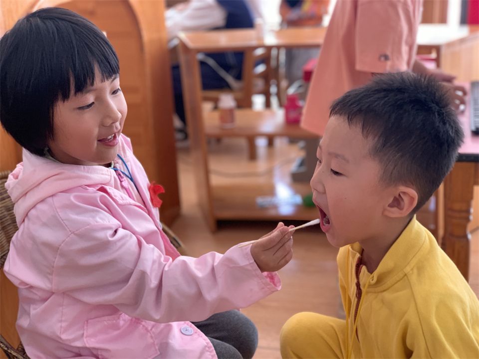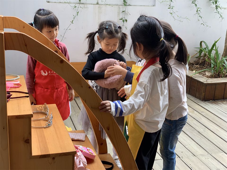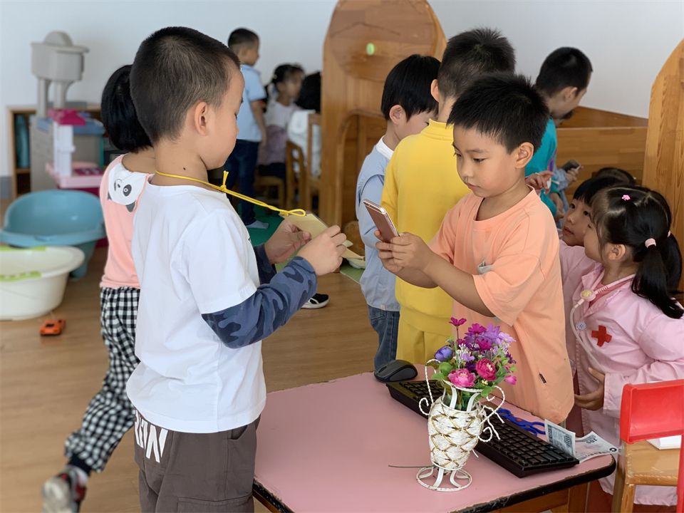 在角色游戏中,宝贝们自主选择角色,可以当服装店的老板、店员,医院的医生、护士,奶茶店的店长、餐厅的经理、服务员等,也可以当小顾客、娃娃家里的家长、孩子等,在游戏中体验周围生活,再现小社会。