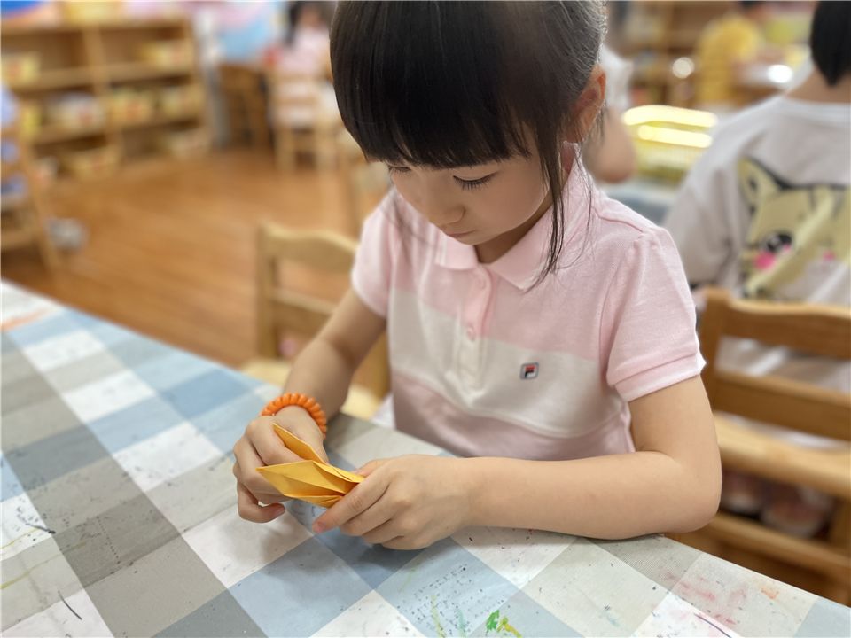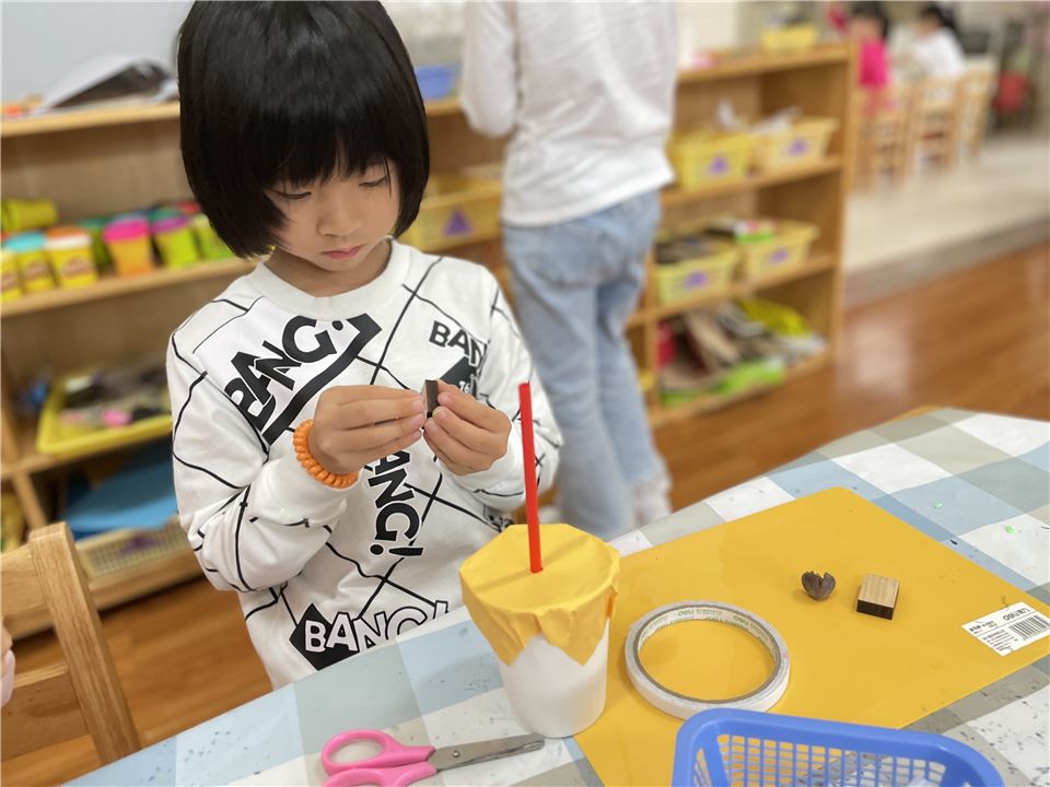 在美工区,孩子们巧手制作一件件毕业互赠的礼物,其中饱含他们依依不舍的情谊。
