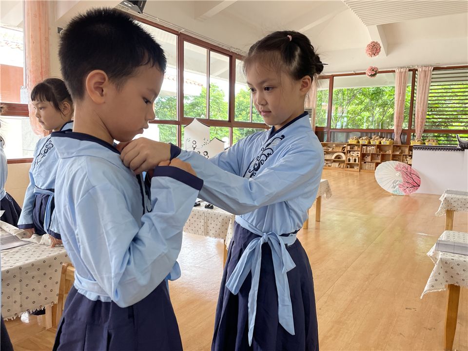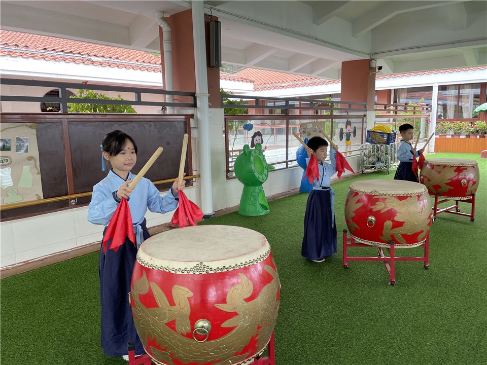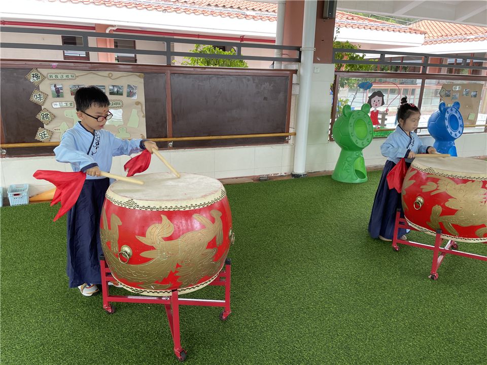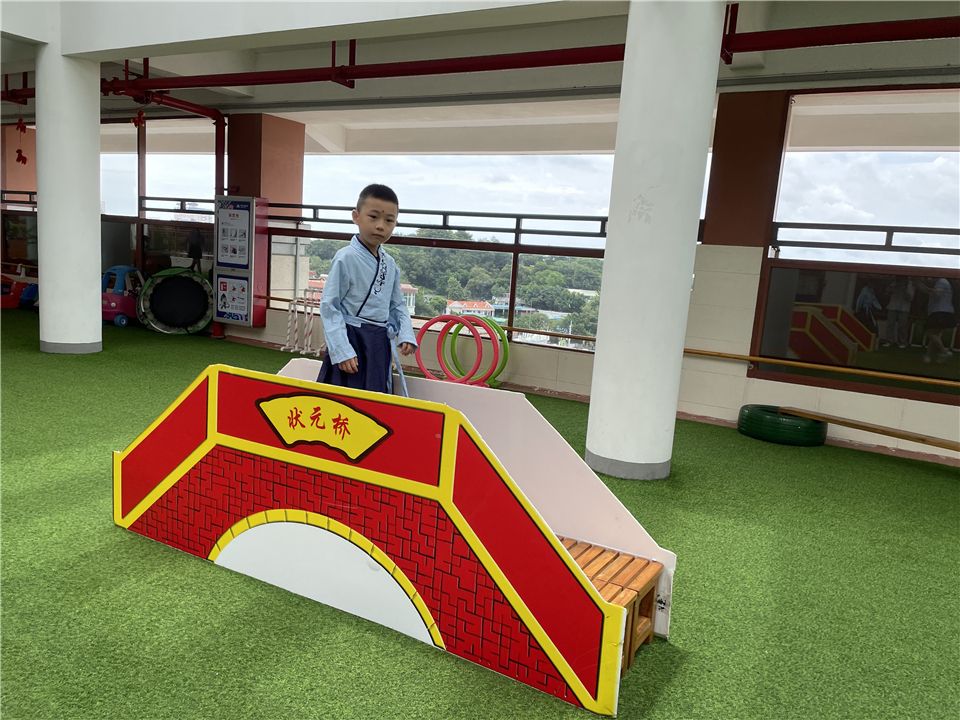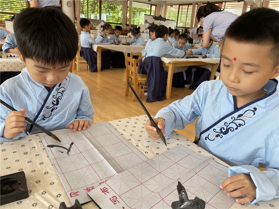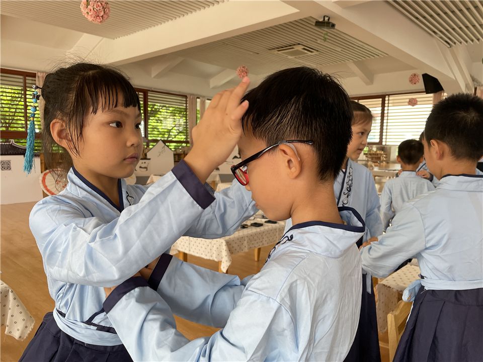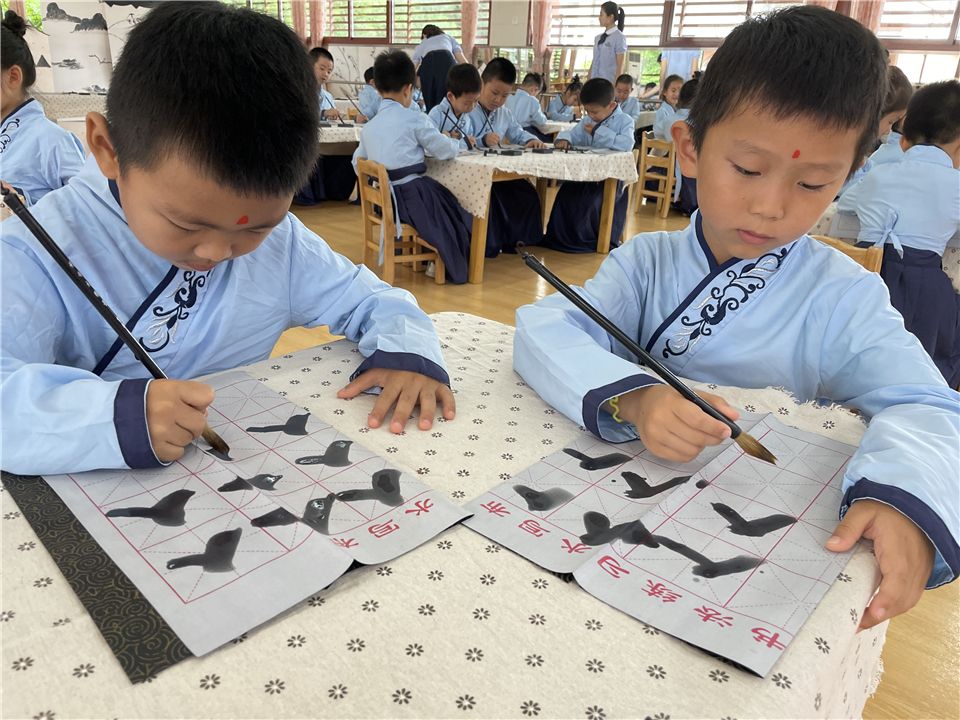 开笔礼中,孩子们正衣冠,写“人”字,击鼓明志,走状元桥。