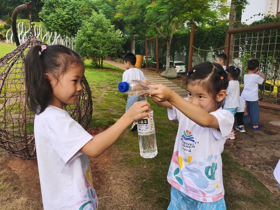 好想念幼儿园小山坡那一棵我们认领的小树,长高了吗?一起去看看吧!带上自制的喷水壶,试试如何喷水?原来,喷水瓶的喷水孔高度不同,孔口大小不同,喷水量和射程都不同。用自制的喷壶浇花太好玩了,赶紧把发现的秘密记录下来和伙伴们一起分享,让小树快快长大吧!