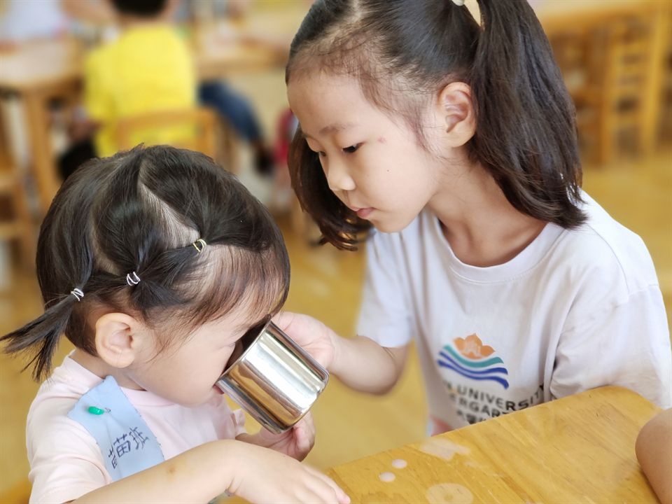 哇,大二班新的教室好漂亮,能看到大海。好久不见的伙伴,赶紧来个开心的大拥抱,希望我们一直都是好朋友。用画笔画下我们的升班愿望。