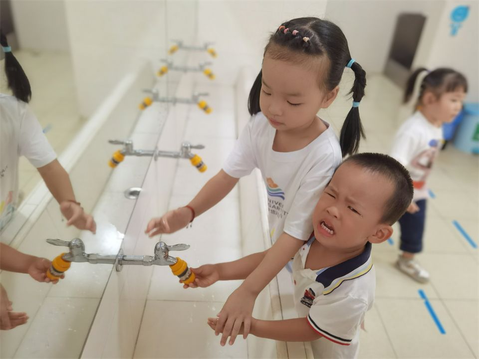 弟弟妹妹,别担心,哥哥姐姐来帮你,幼儿园将是我们温暖的家。已是大班哥哥姐姐的我们到了大南部接小班的弟弟妹妹入园,“来,小妹妹,姐姐带你去活动室”,“小弟弟,你别哭了,我们一起洗洗小手”……瞧,大班的哥哥姐姐真给力!让小班、中班小朋友们感受到哥哥姐姐对自己的爱护与帮助,感受到幼儿园就像温暖的家!