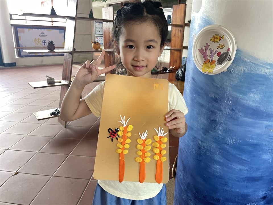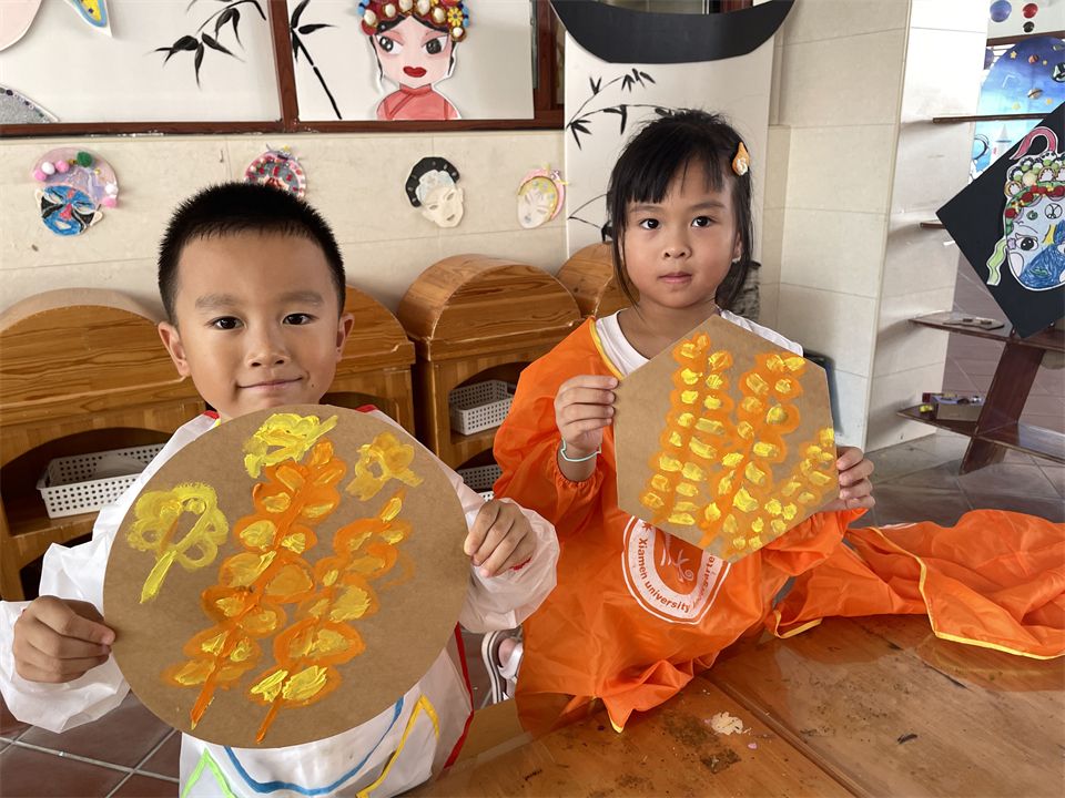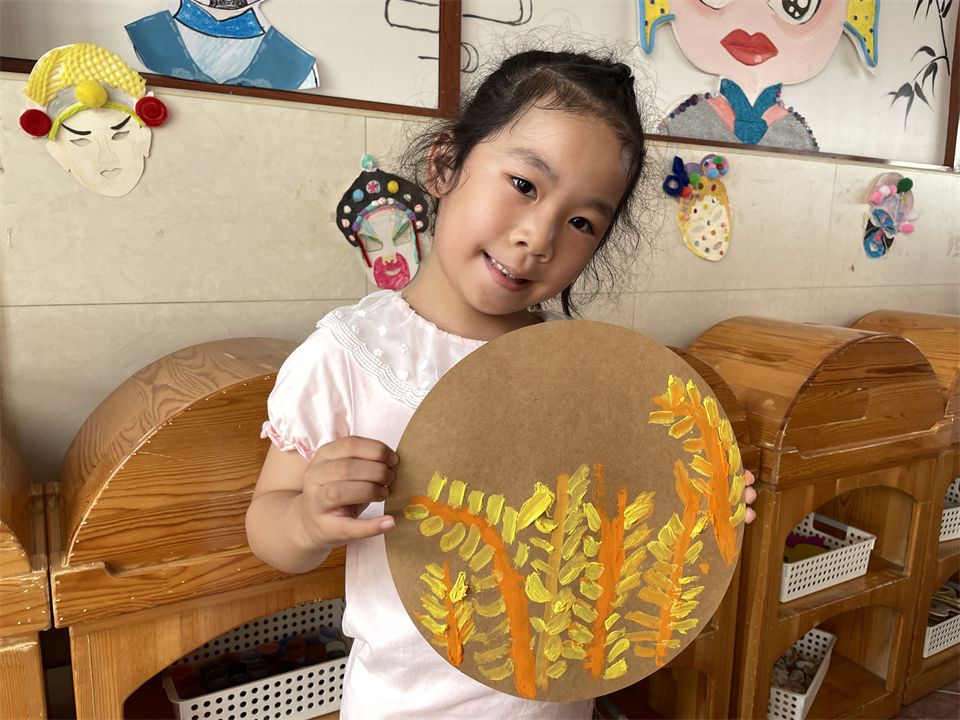 孩子们经过仔细的观察和大胆的尝试,完成了自己的作品,“丰收”了自己的小麦,感受着秋收的欢喜…