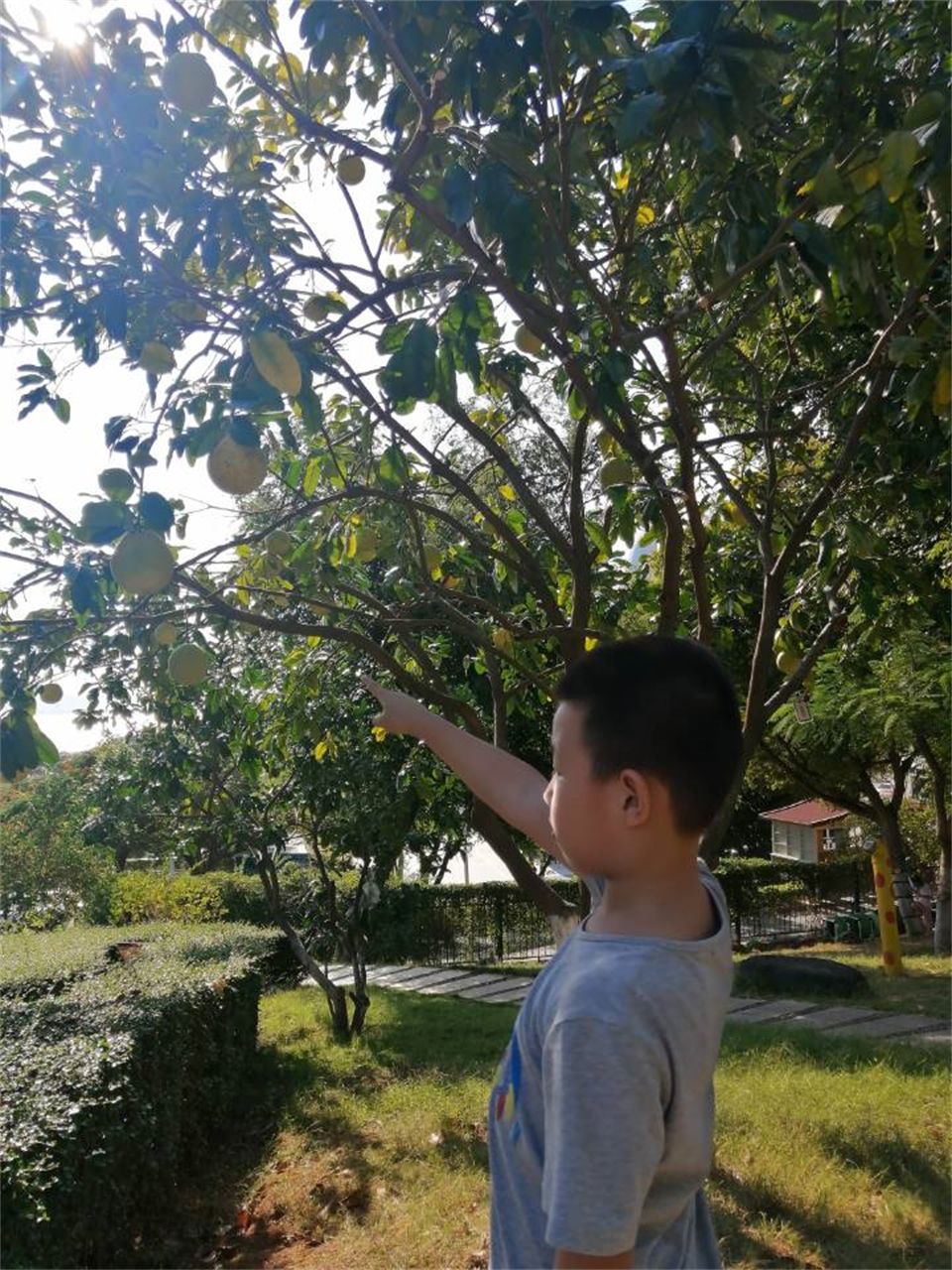 “老师,你看那棵树上结了好多水果!还有还有……那棵树也是!”