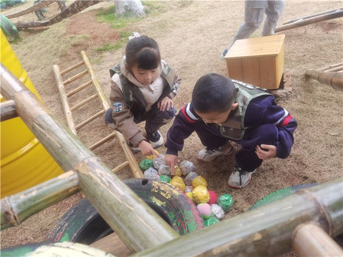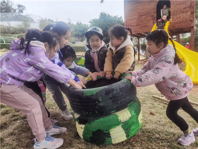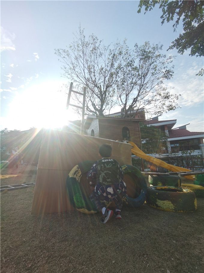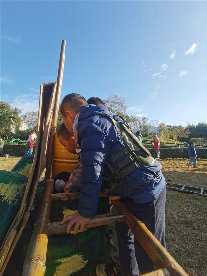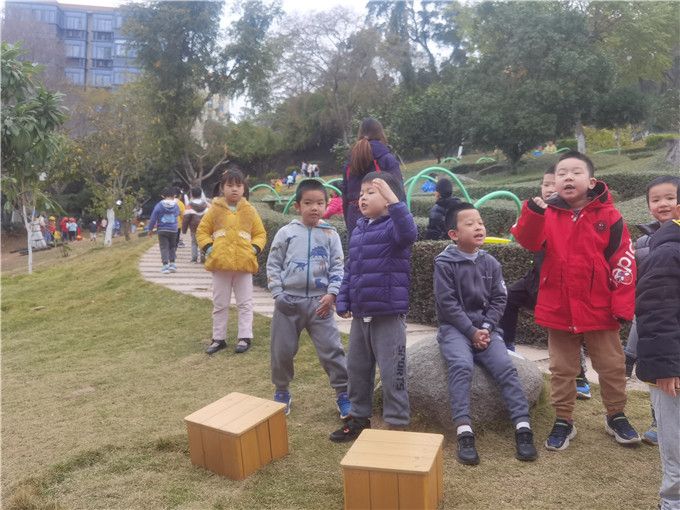 冬日的早晨,温柔的暖阳静静地泼洒在幼儿园小山坡上。
