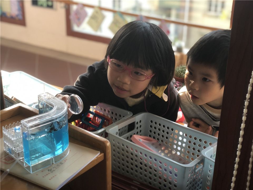 新的一学期在红红火火的元宵灯谜中拉开了序幕。瞧!热热闹闹的灯会,穿着喜庆色彩衣服的大七班孩子们叽叽喳喳,让安静了一个寒假的小山坡瞬间热闹了起来:会认字的孩子念着谜面,爱动脑筋的孩子飞快地想出答案,嘻嘻哈哈的快乐声音回荡着,宣示着“亲爱的幼儿园,我们又回来了” !在二、三月份里,我们开展 “冬奥会”主题的角色游戏;在音体室搭建《美丽的幼儿园》;在山坡上我们表演《白雪公主》;在沙池玩沙;在植物角里,我们照顾花草,记录小动物的成长过程……