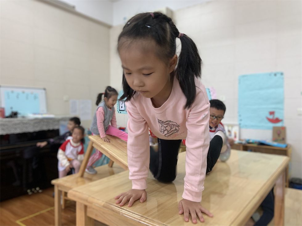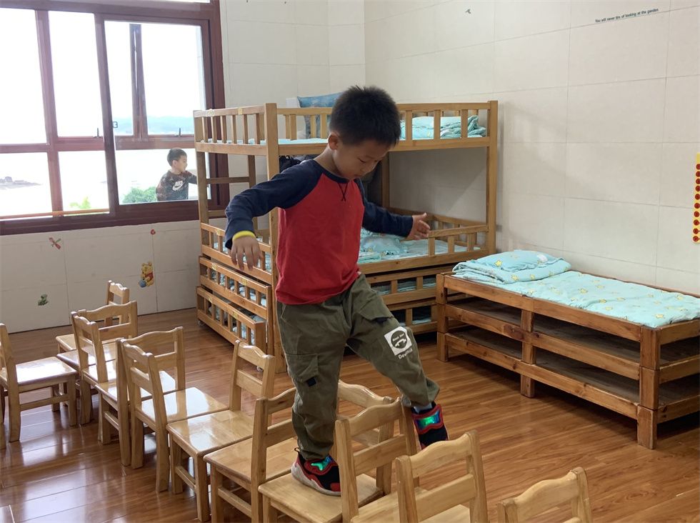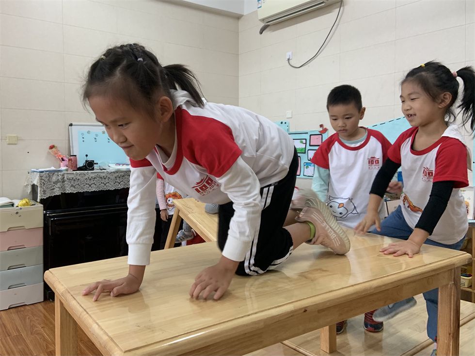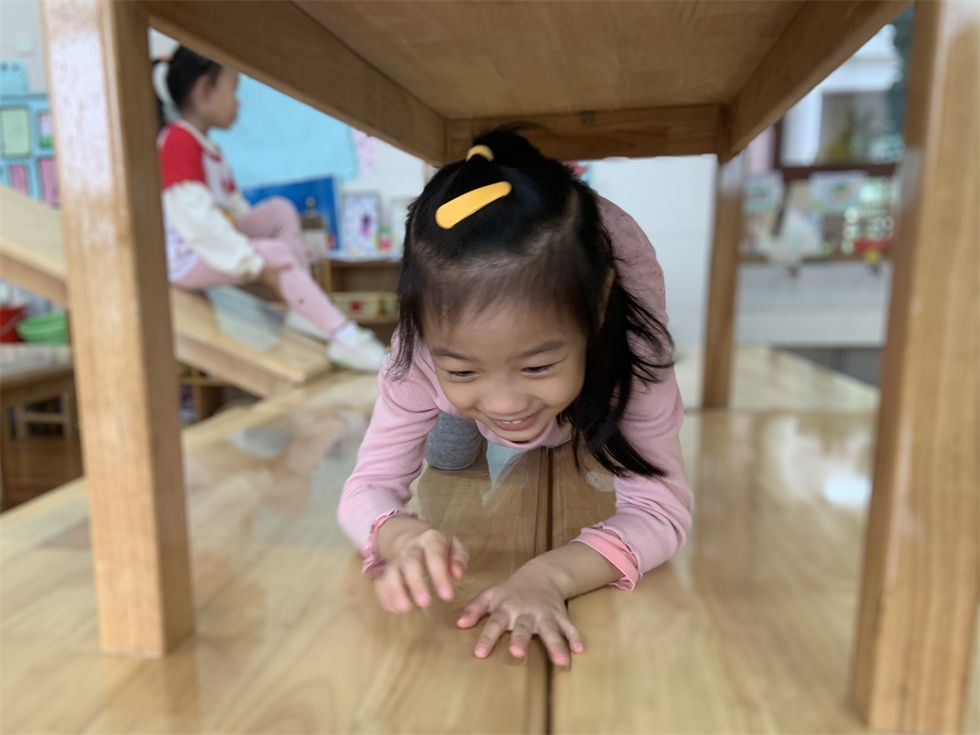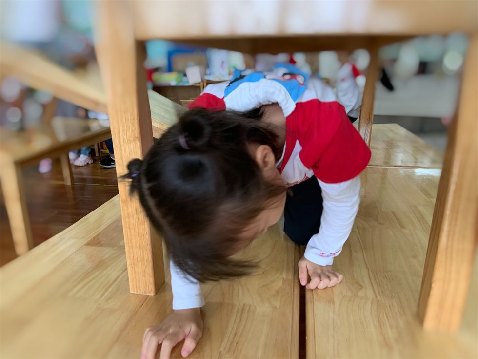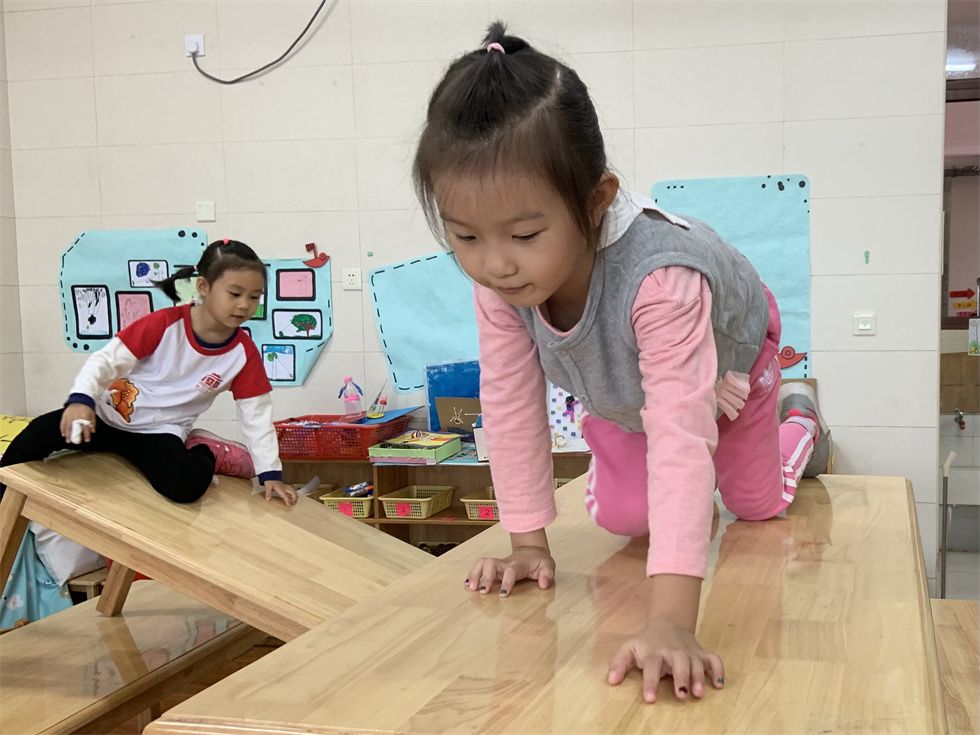 最爱在户外玩耍的萌娃们,个个突发奇想,不一会儿就将教室、卧室的角角落落利用起来。