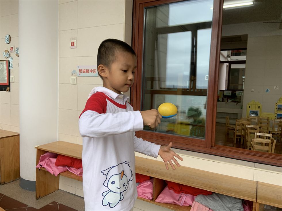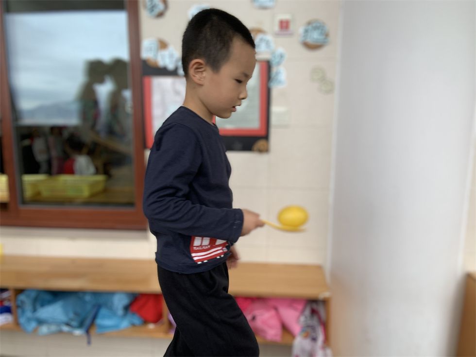 “‘翻越小山’要小心哦,慢慢地不要让蛋宝宝掉下来了。”