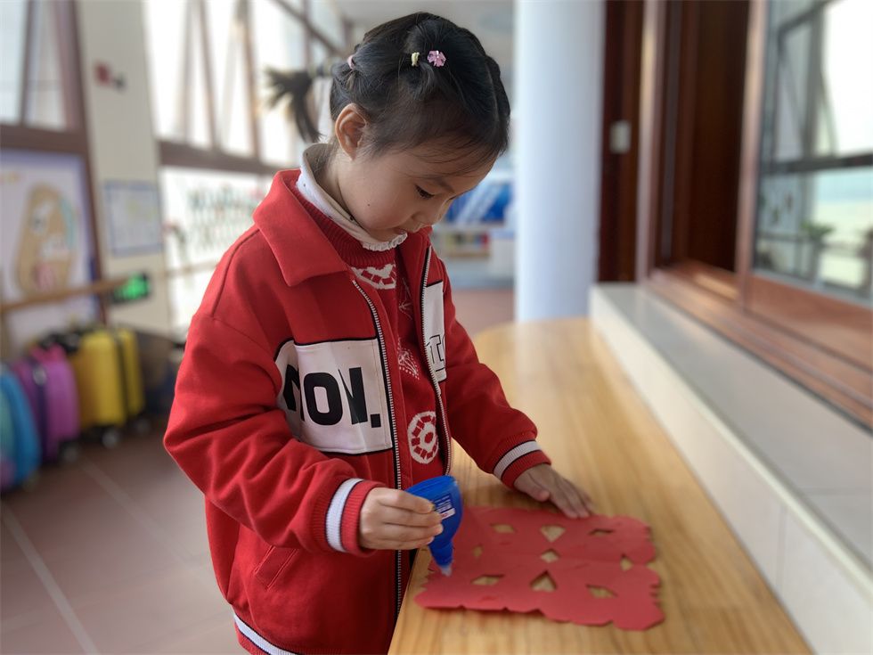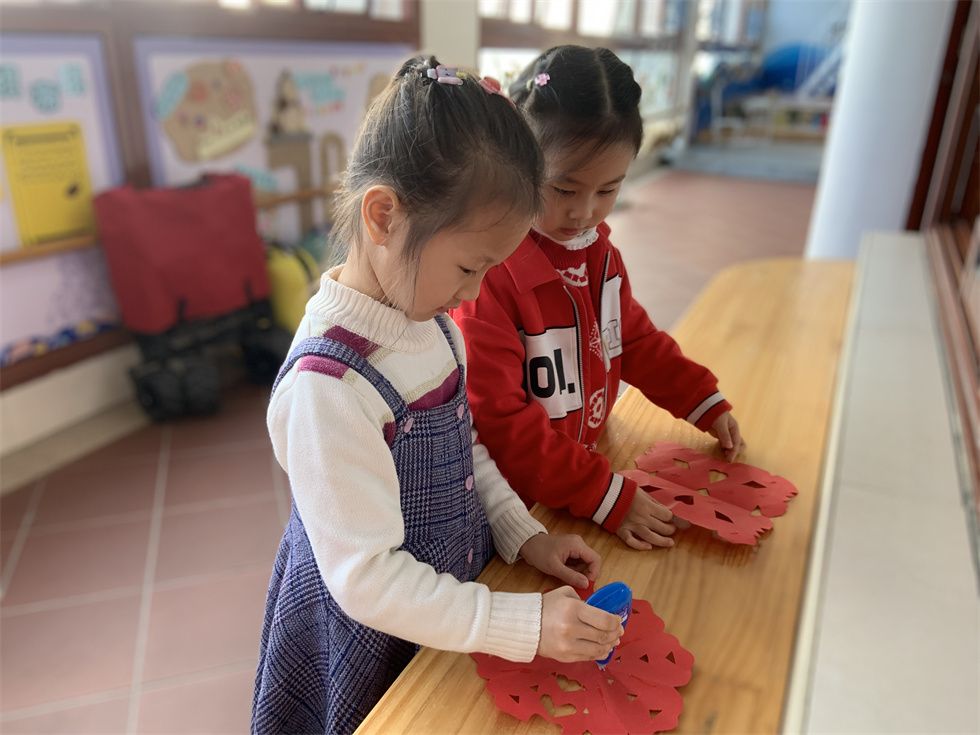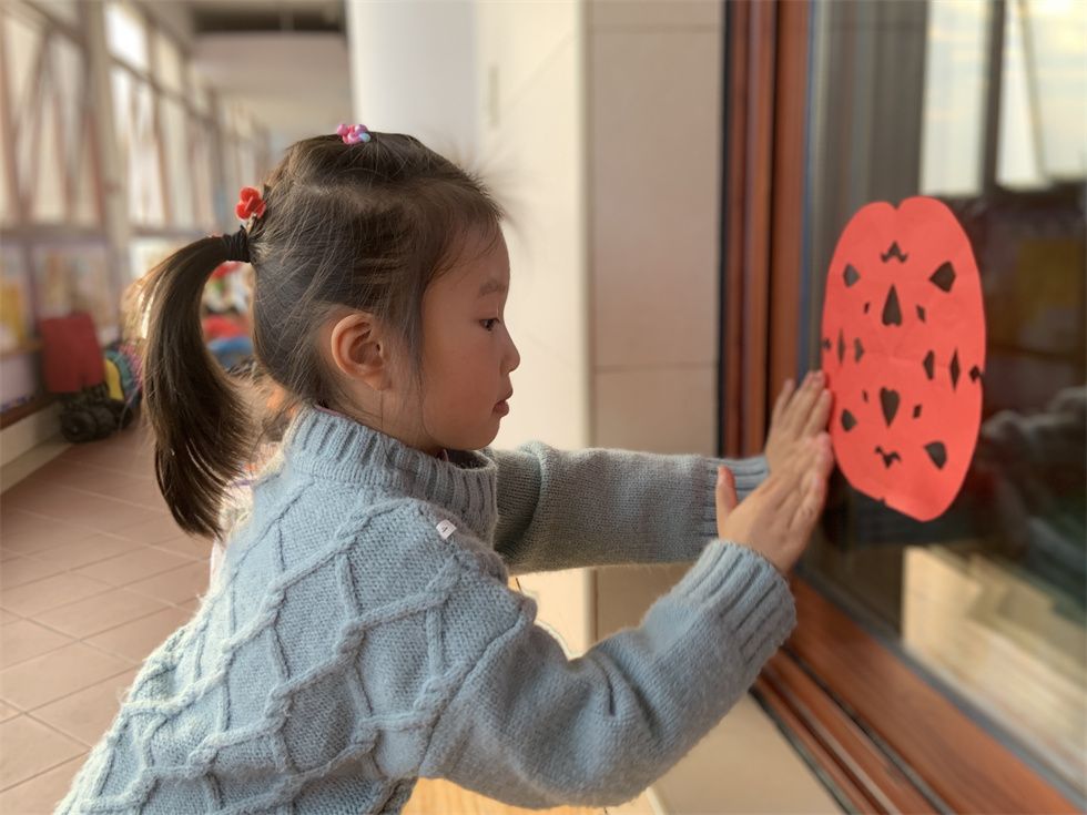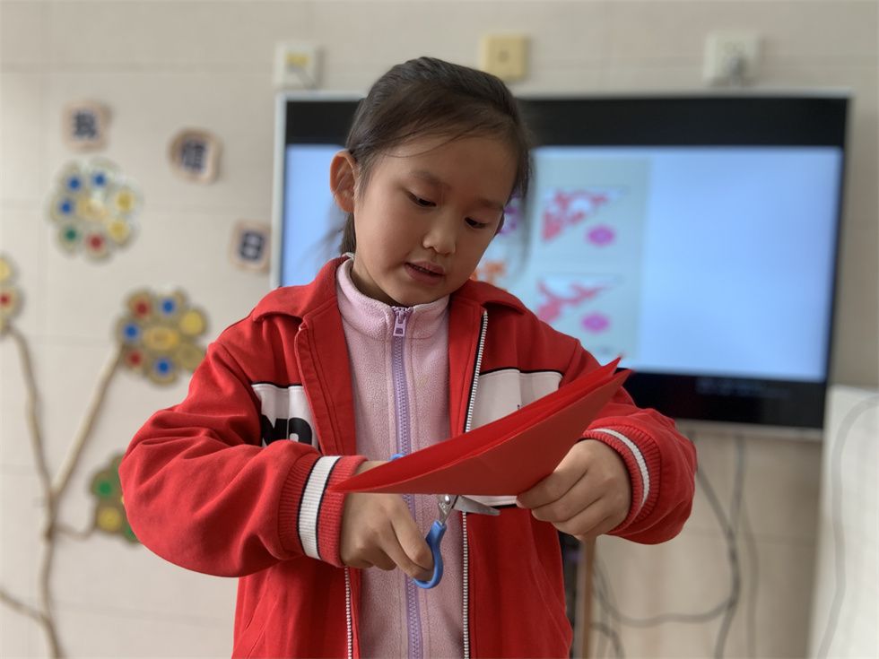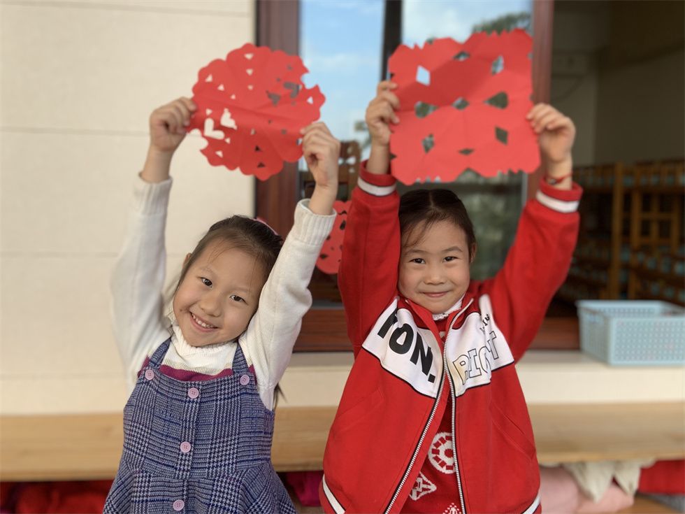 “我妈妈说过红红的窗花,预示着新的一年可以红红火火。”