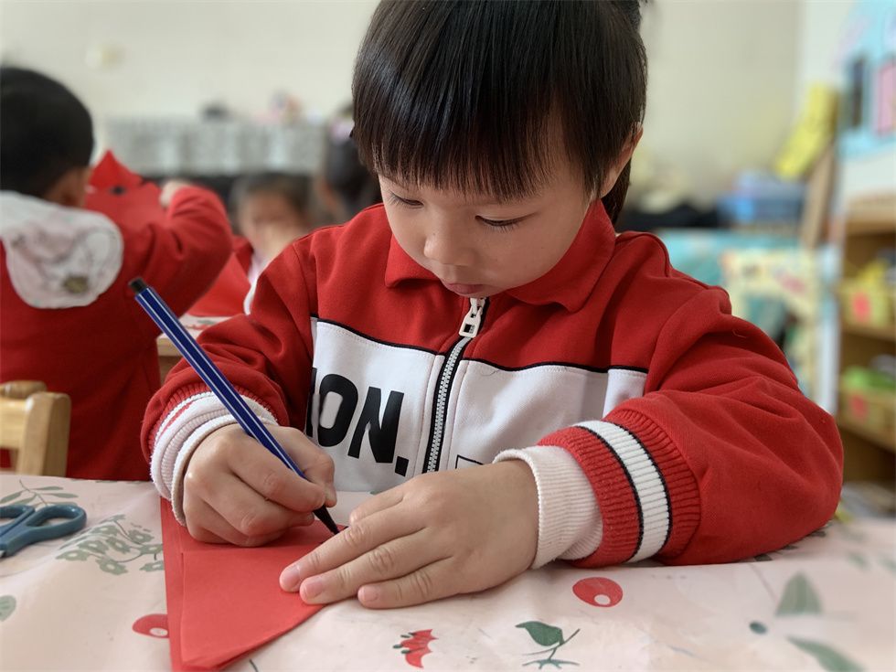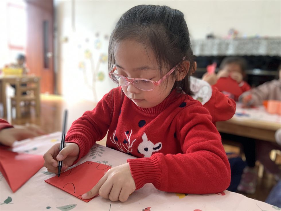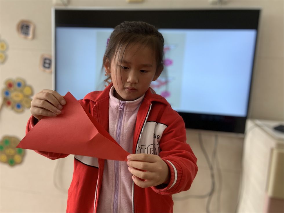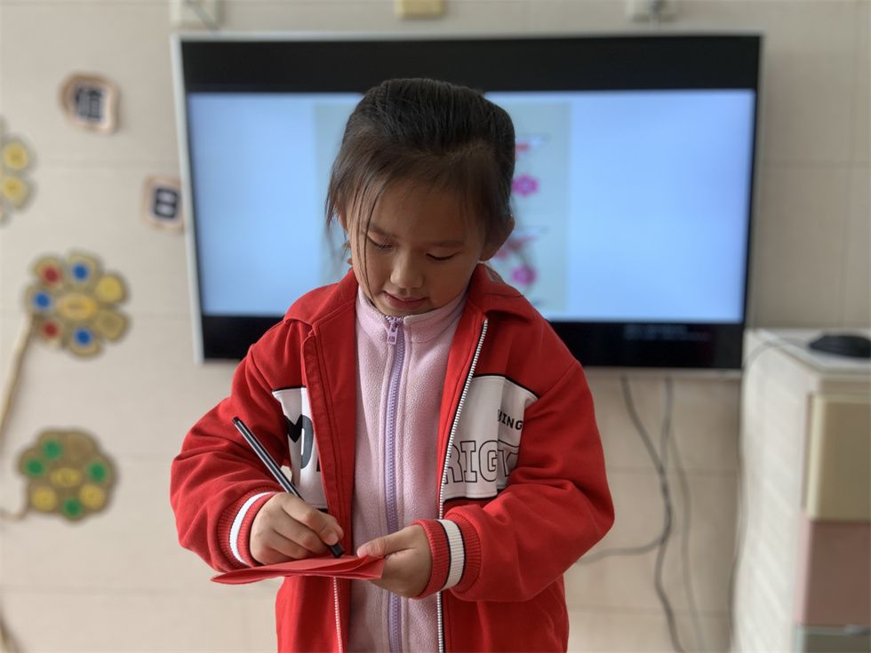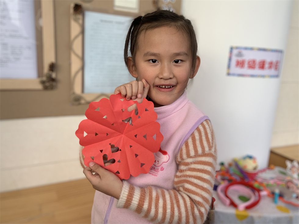 “我妈妈说过红红的窗花,预示着新的一年可以红红火火。”