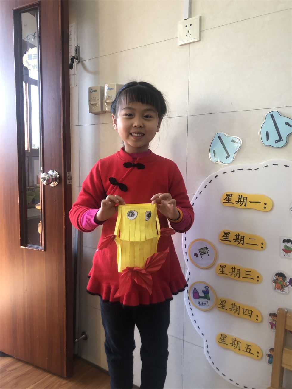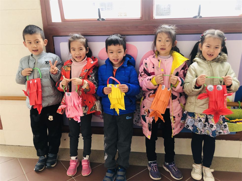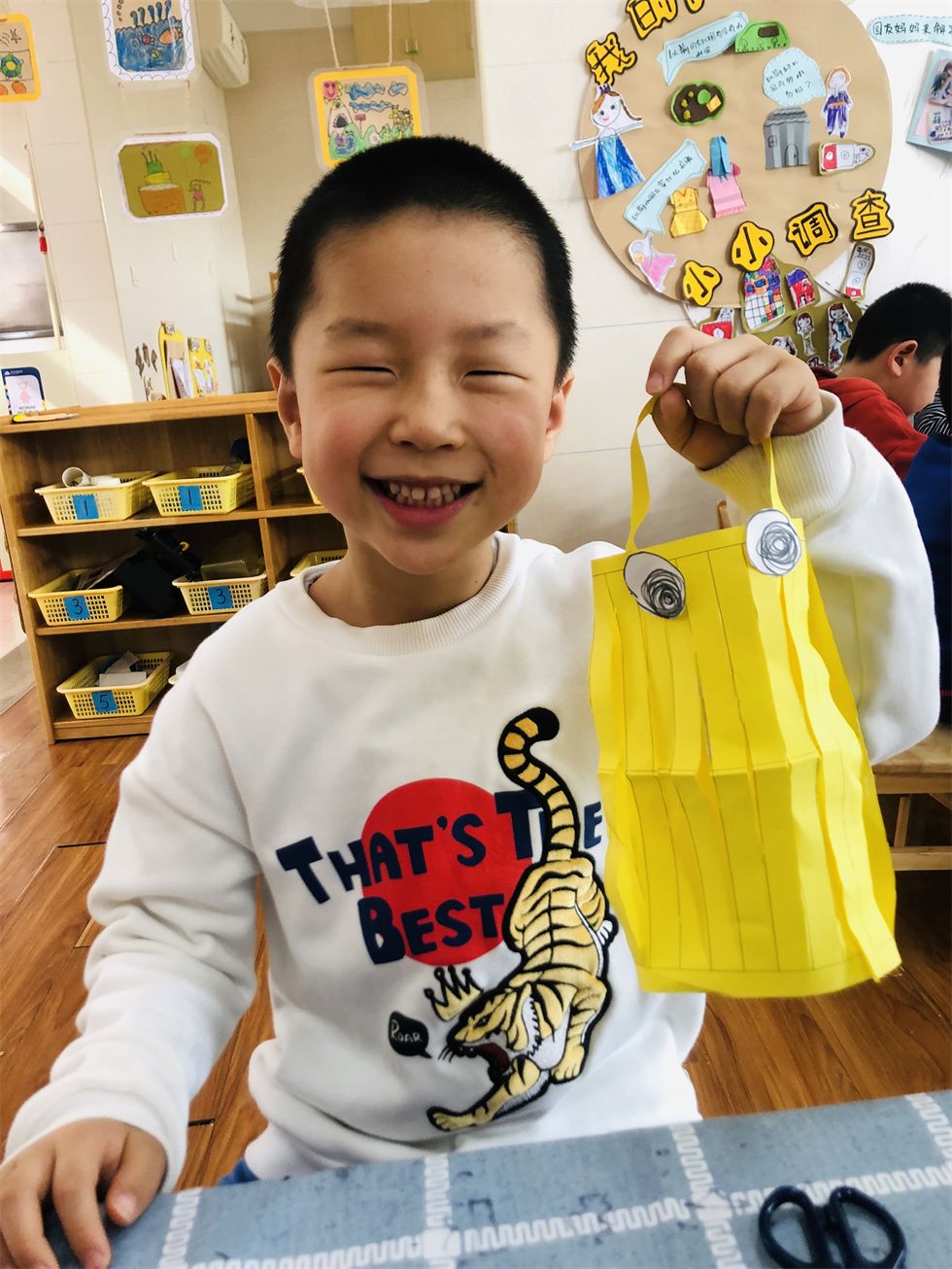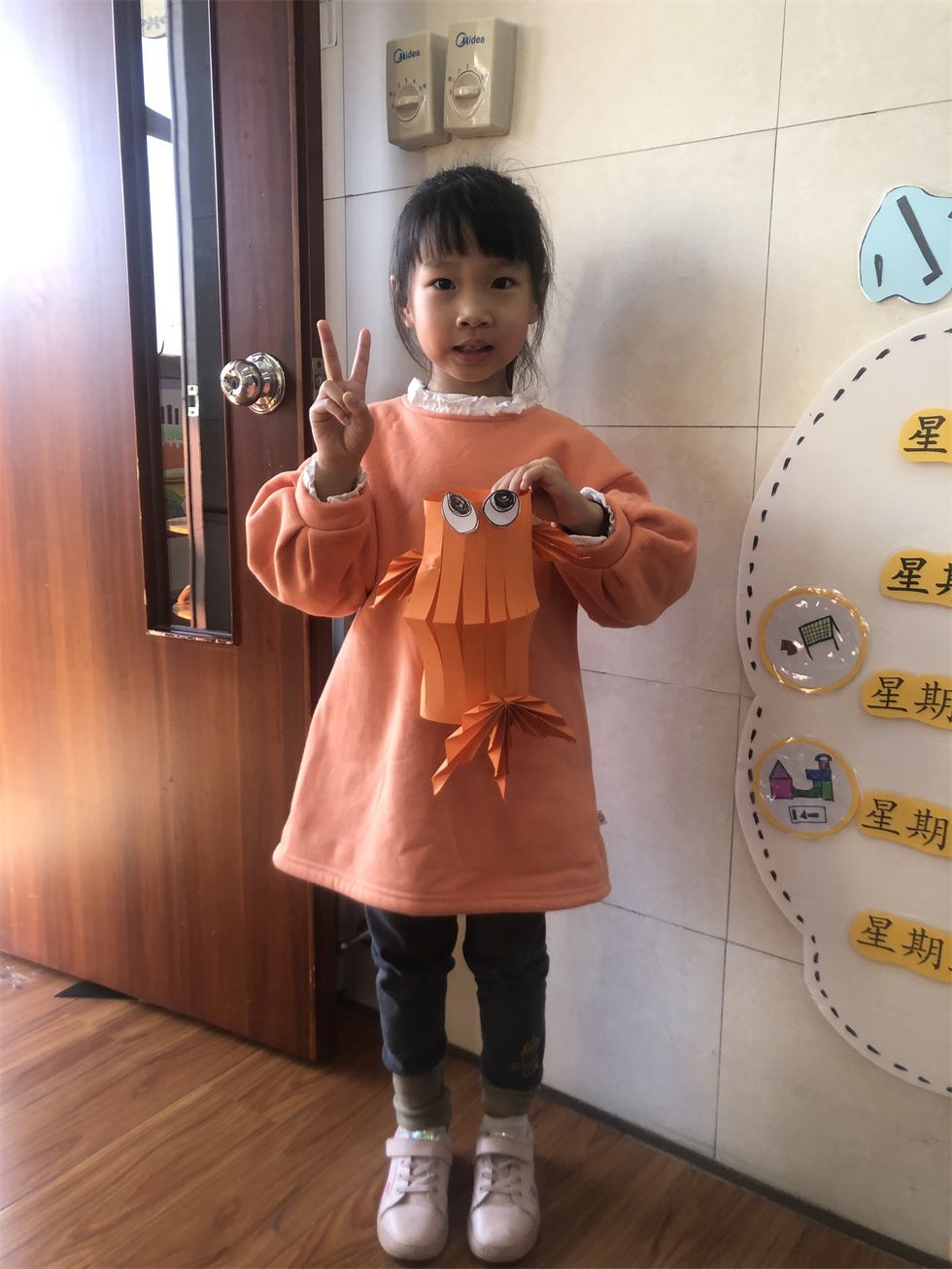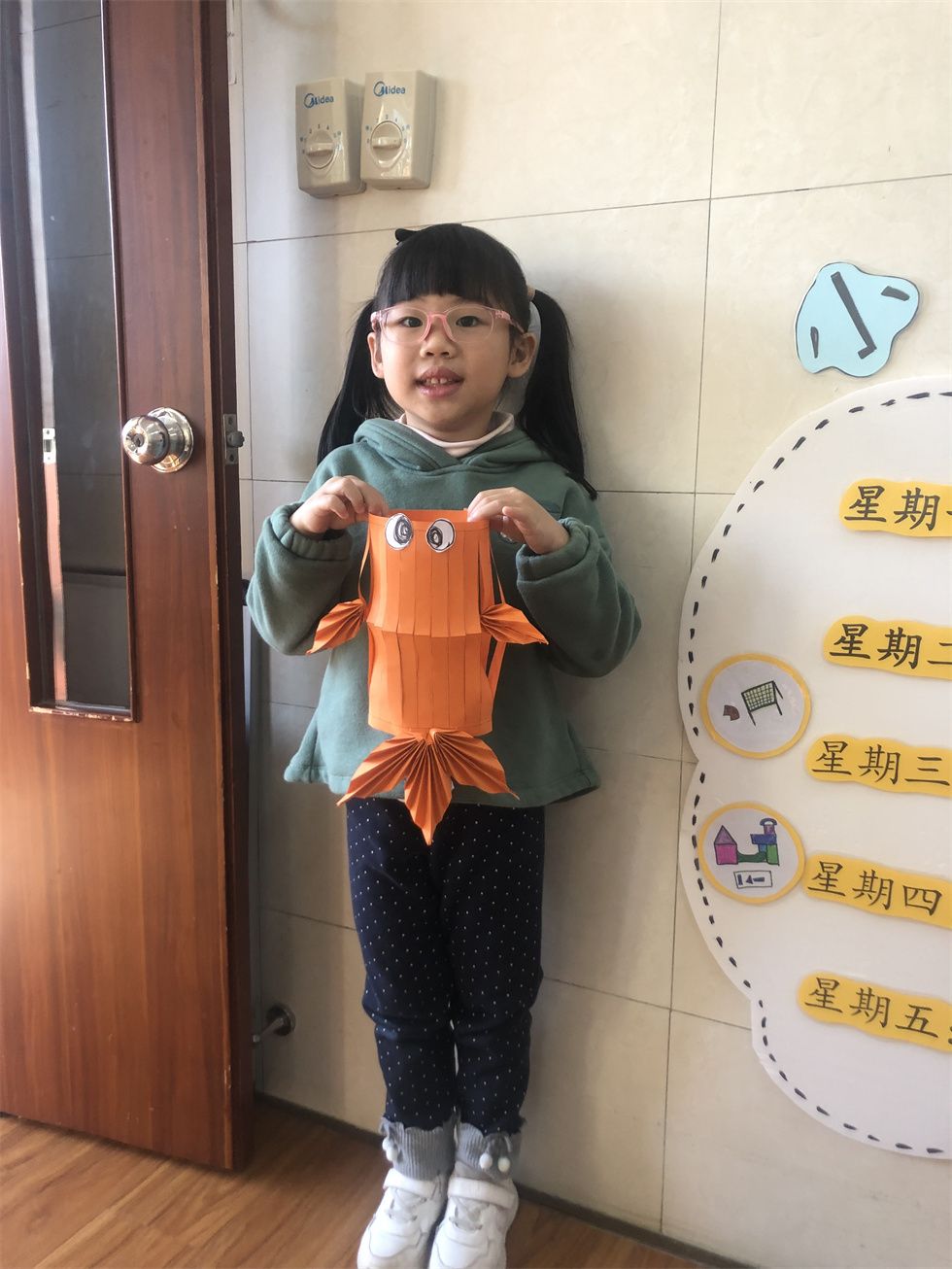 “看,我的鱼灯笼做好了。”萌娃们都迫不及待的展示的自己的鱼灯笼。