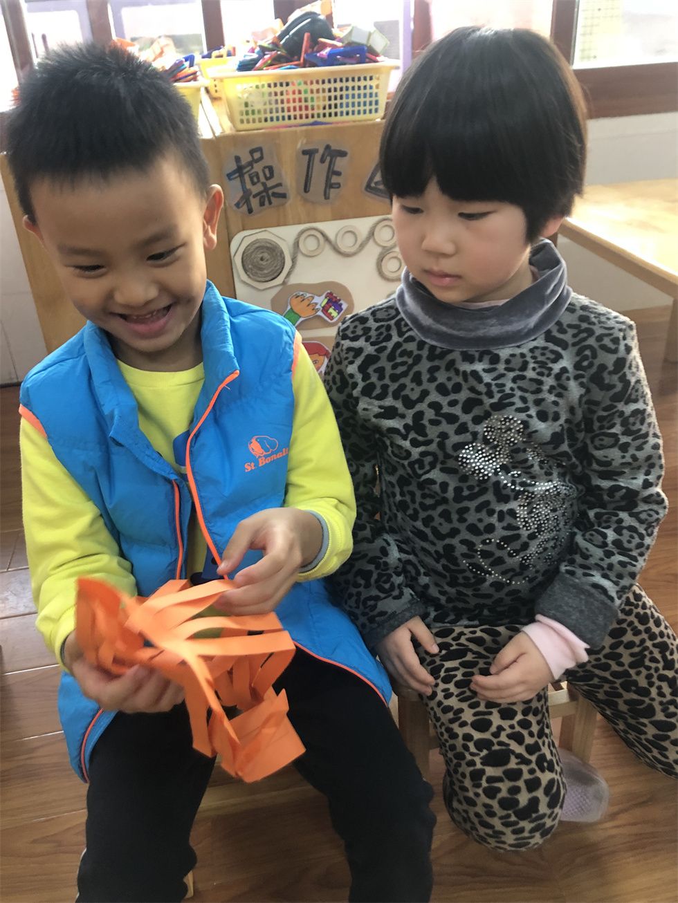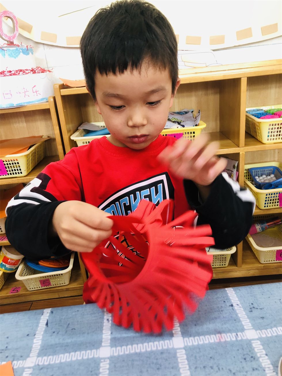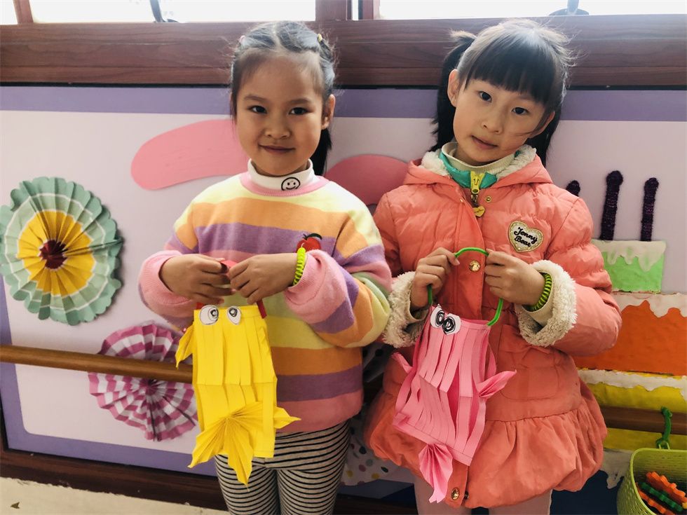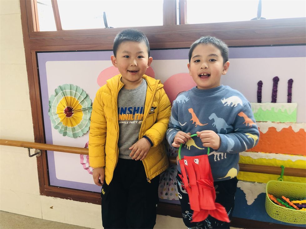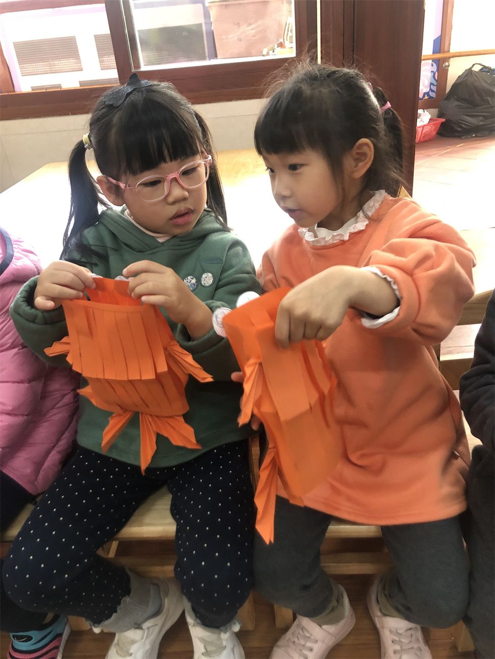 “看,我的鱼灯笼做好了。”萌娃们都迫不及待的展示的自己的鱼灯笼。