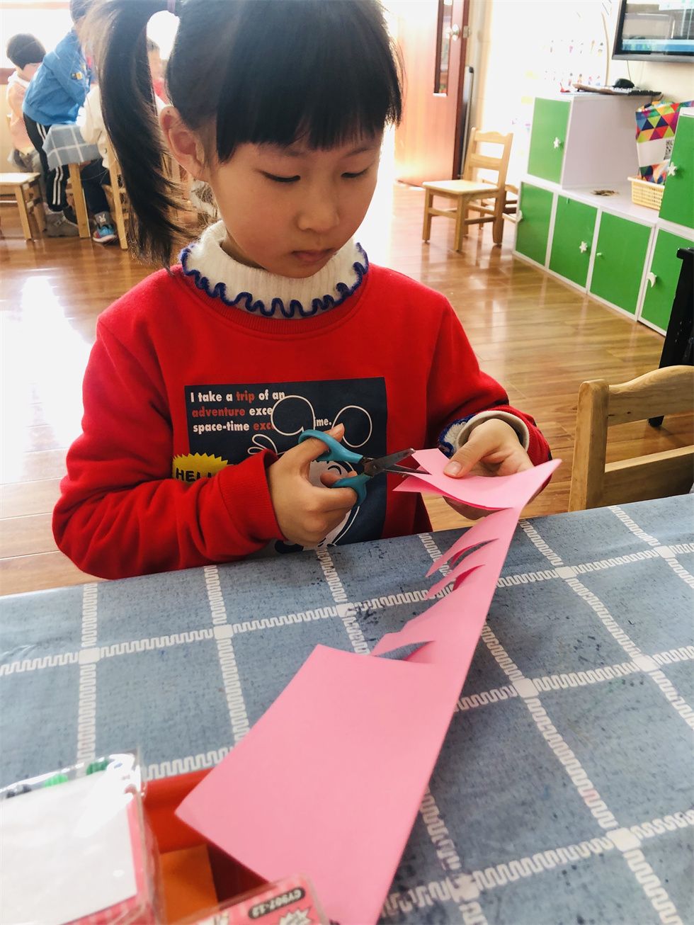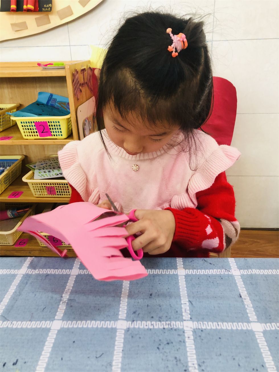 萌娃们小心翼翼的剪着鱼灯笼的身体,一条条纸片看起来就像鱼鳞一样可爱。