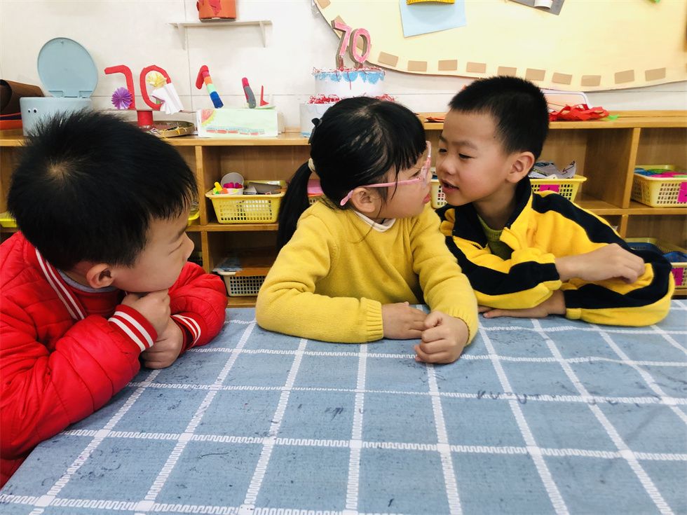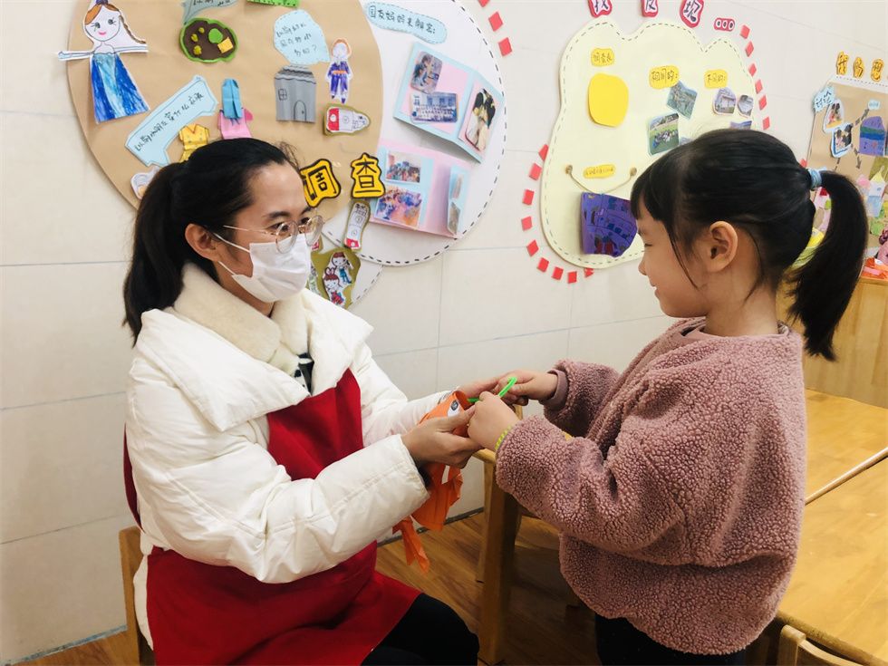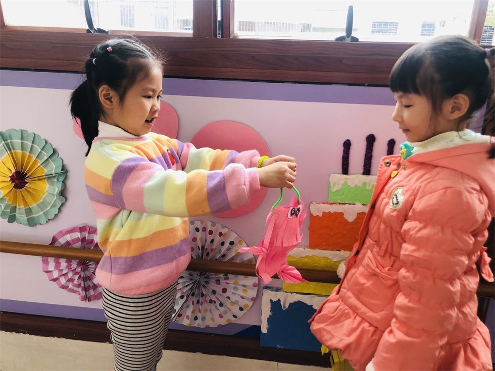 “我的鱼灯笼是细细长条的。”萌娃们在热烈讨论自己的鱼灯笼。