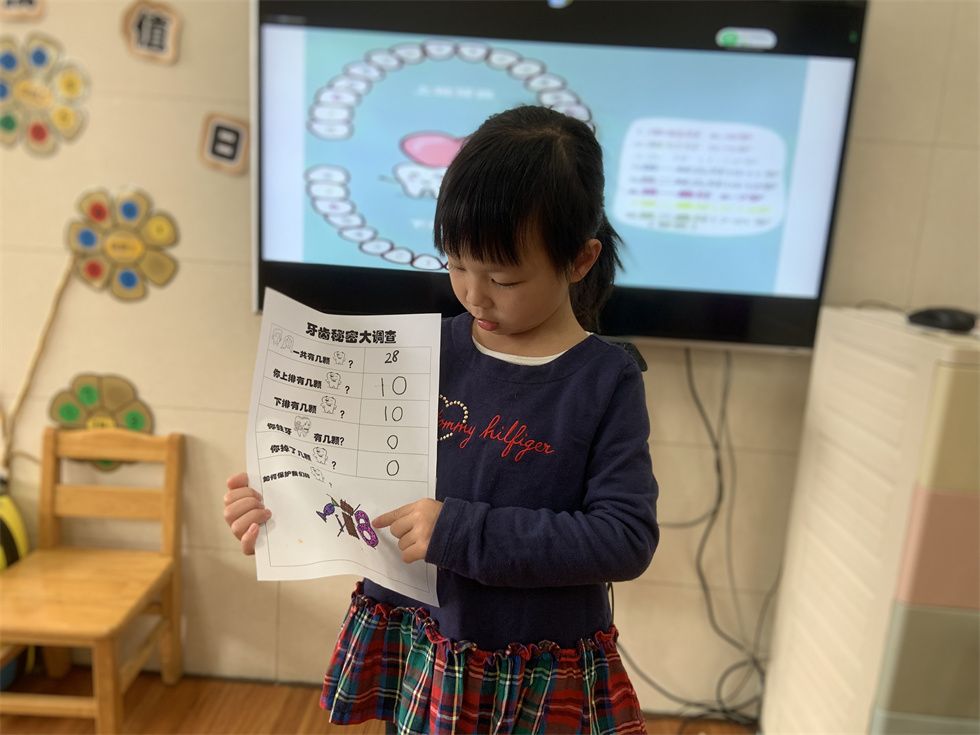 通过与爸爸妈妈的亲子大调查中发现:大人和小朋友牙齿的数量不一样。
