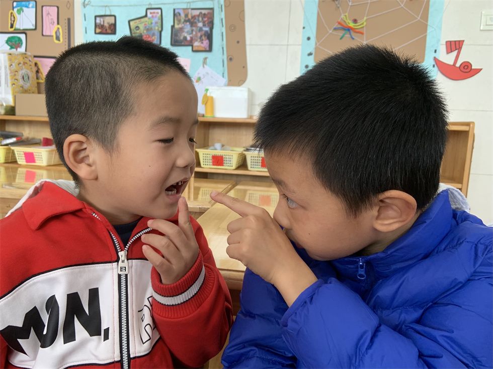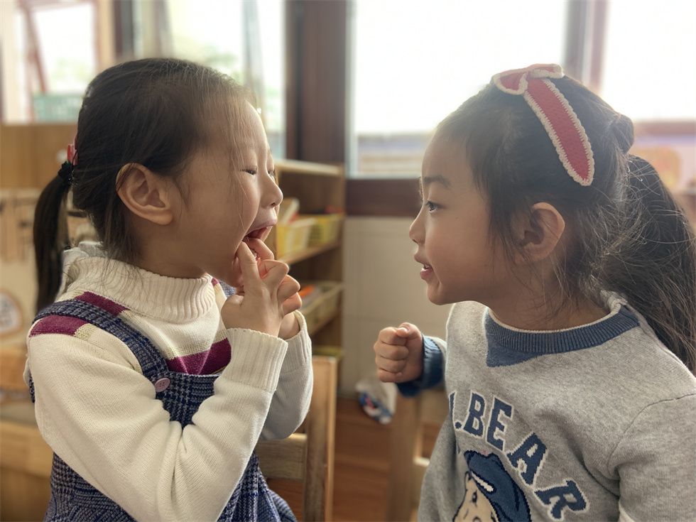 萌娃们和自己的小伙伴一起互相观察对方的牙齿,不时发出许多疑惑的声音。