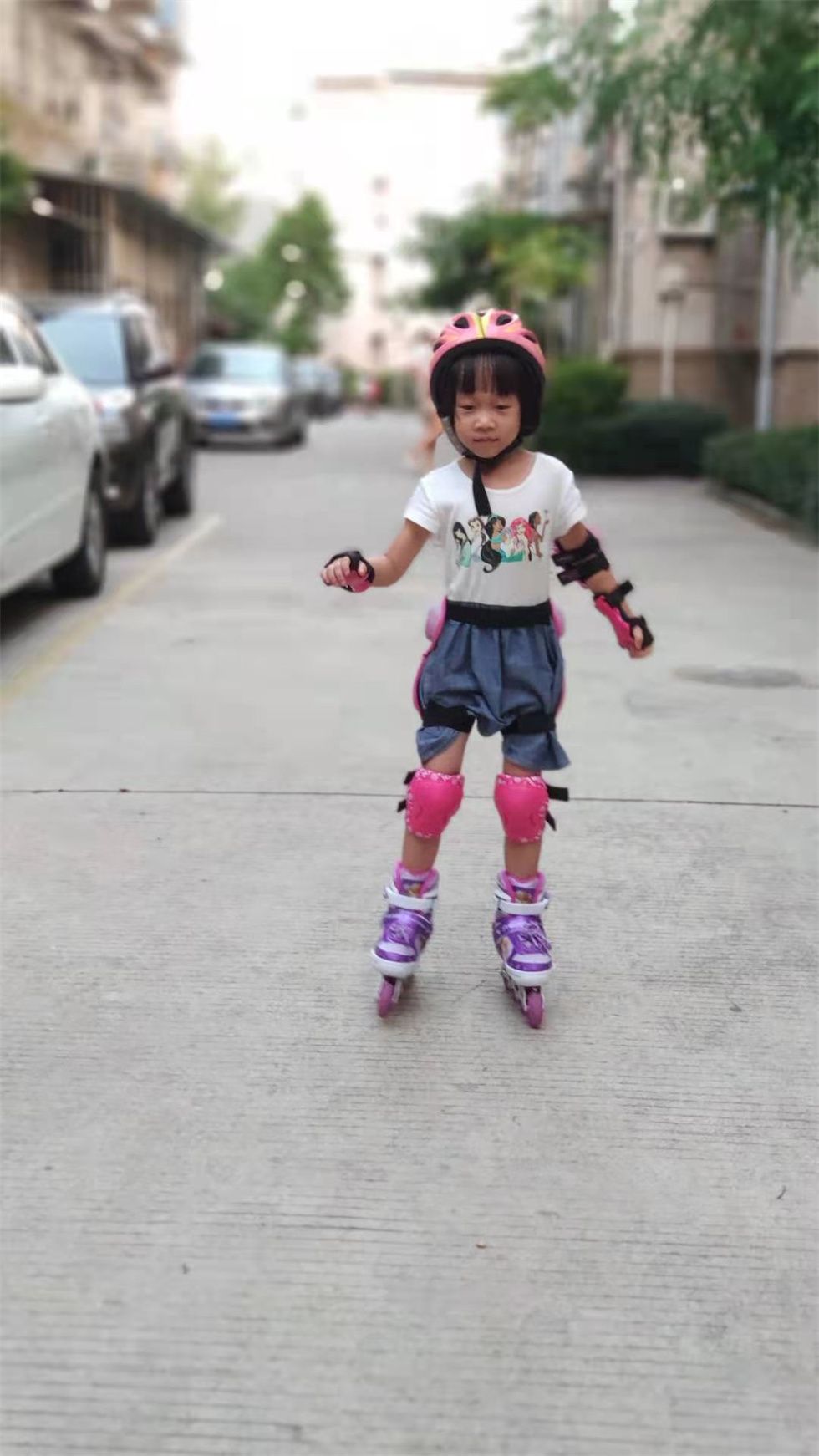 我学会轮滑啦,大街上我的速度好快呀!不过,还是要注意穿好防护,控制好速度,不能在车多人多的地方运动。