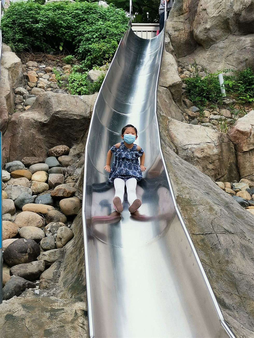 高高的滑滑梯太好玩了,我一点儿都不怕。