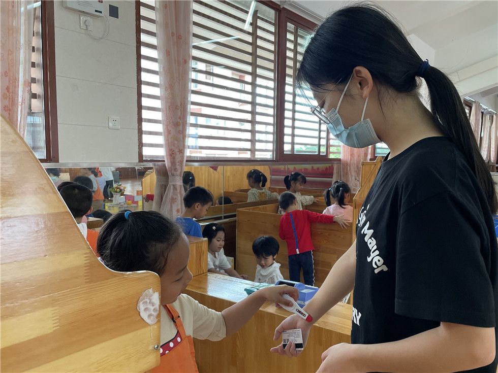 “先测量一下体温哦。”