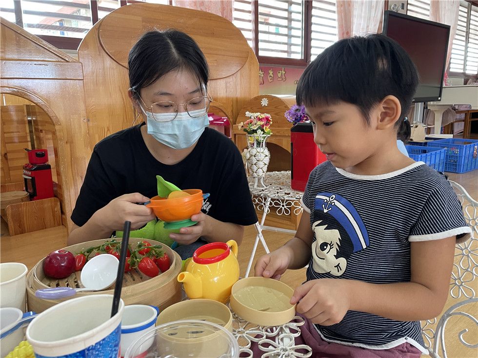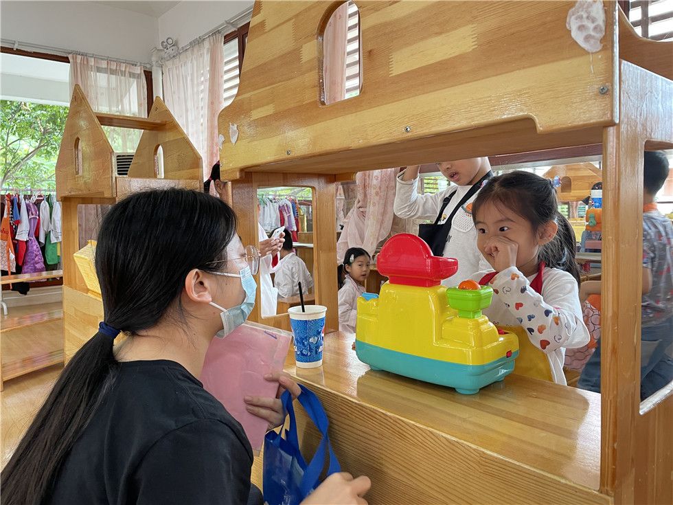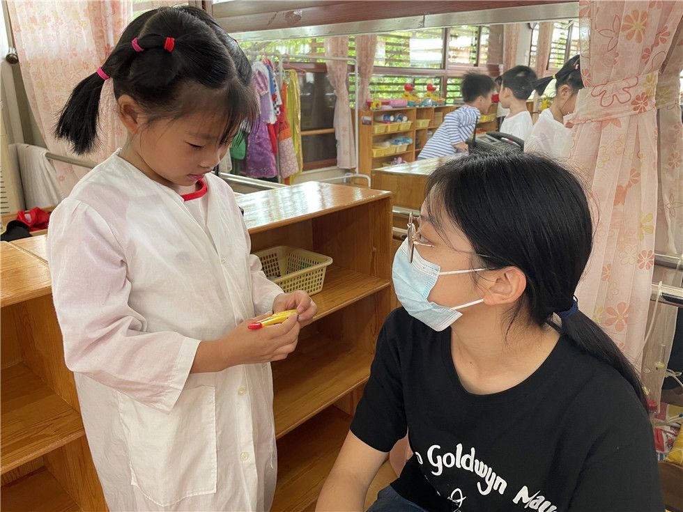 角色游戏是幼儿通过扮演角色,运用想象、创造性地反应周围生活的一种趣味游戏。通过大二班萌娃与实习生姐姐许老师的故事,可以看出萌娃们能大胆、主动地与他人交流和学习、合作。让我们一起期待之后的故事吧!