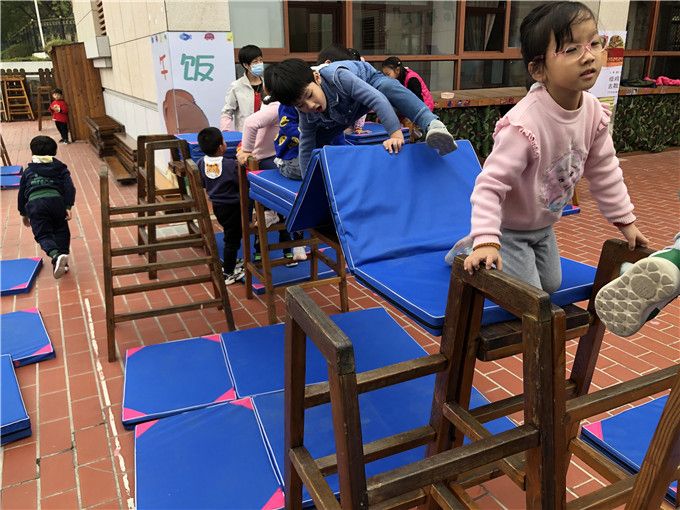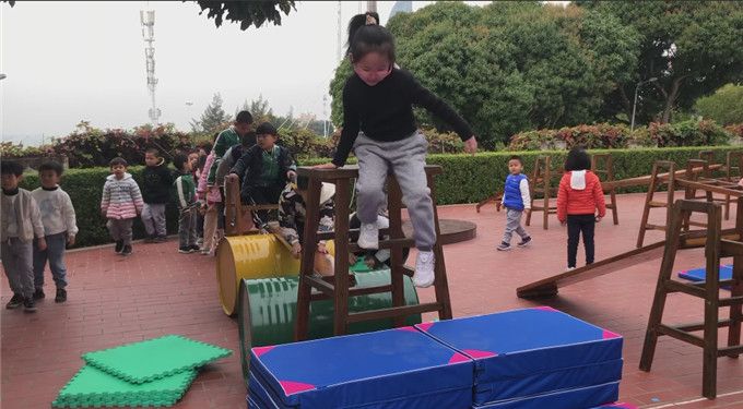 地垫不只是保护措施,我们同样可以充分利用。跨、滚、爬,各种花样我们信手拈来。